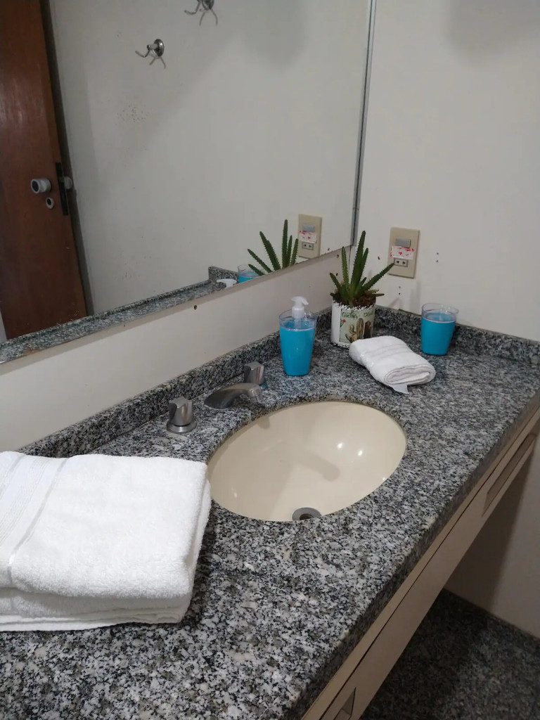 Piscina, sauna e garagem gratuitos. A academia é cobrado á parte. O checkin é feito a partir das 14:00 e check-out até o meio dia na recepção do flat que funciona 24 horas mediante identificação de todos os hóspedes.
