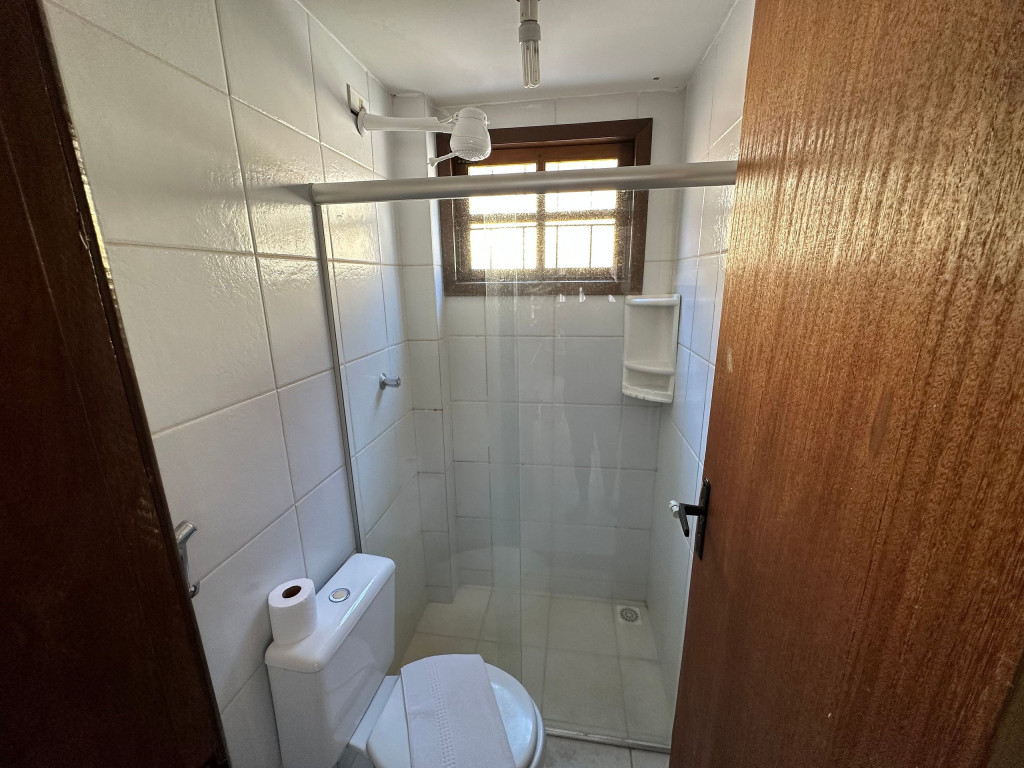 A casa dispõe de 3 banheiros, sendo 1 em cada suítes com chuveiros de aquecimento solar, e 1 banheiro social com chuveiro elétrico.