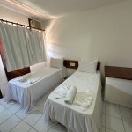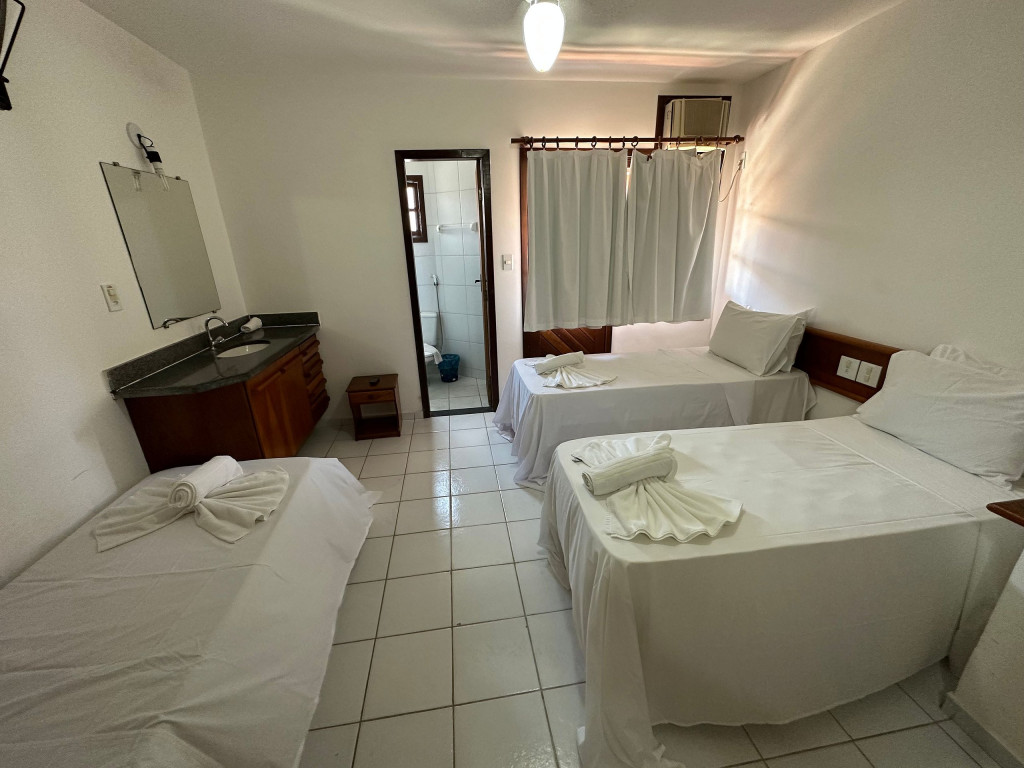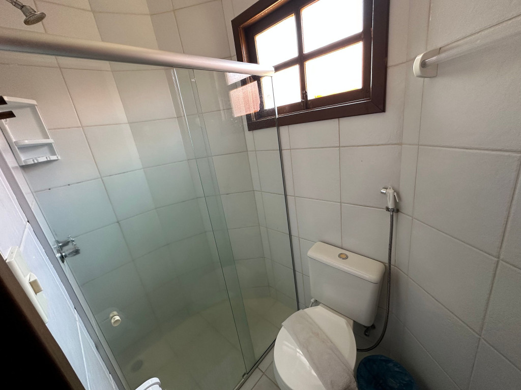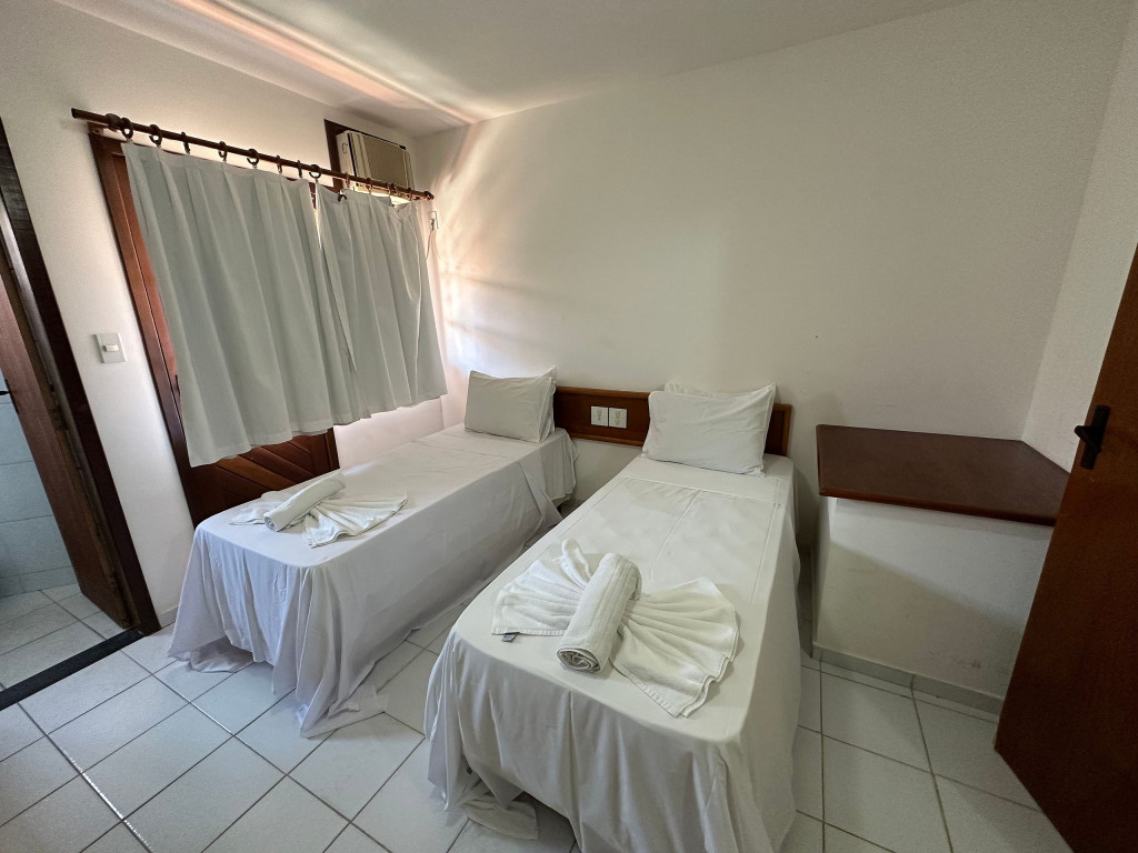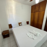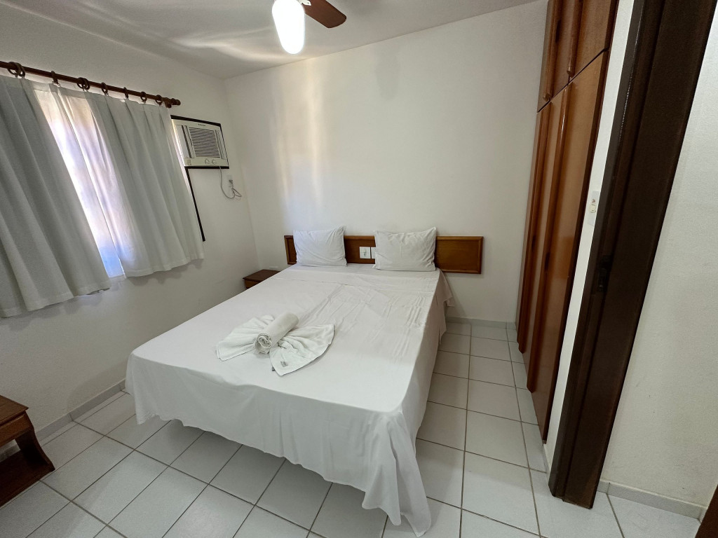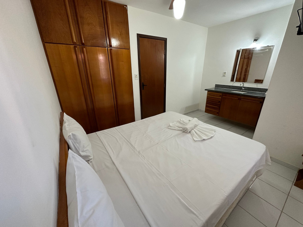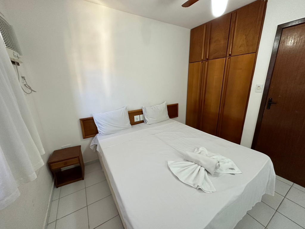 A primeira suíte possui ar-condicionado, ventilador de teto , 01 cama de casal, travesseiros, . Oferecemos o enxoval de cama e banho. No quarto você ainda terá um roupeiro para armazenar suas bagagens.