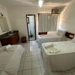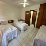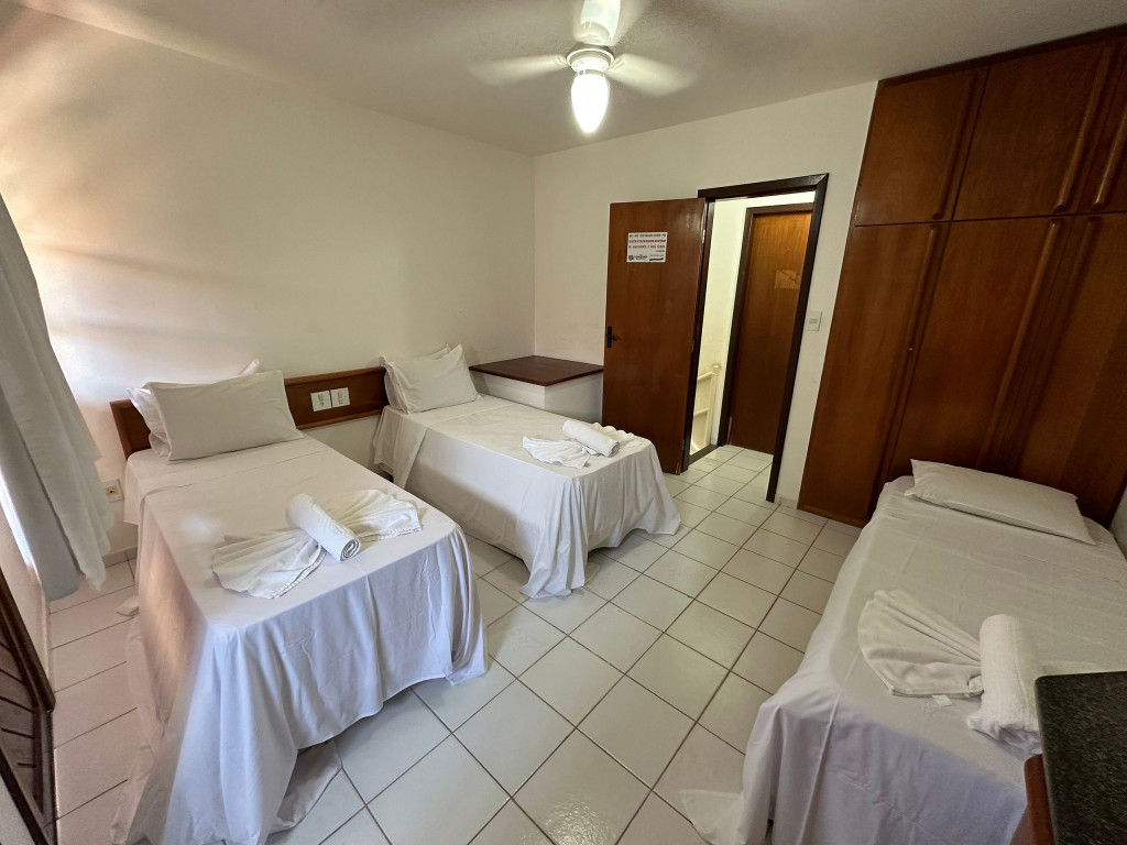 1 cama de casal com 2 camas auxiliares de solteiro, travesseiros ,enxoval de cama e banho, roupeiro para armazenar duas bagagens.