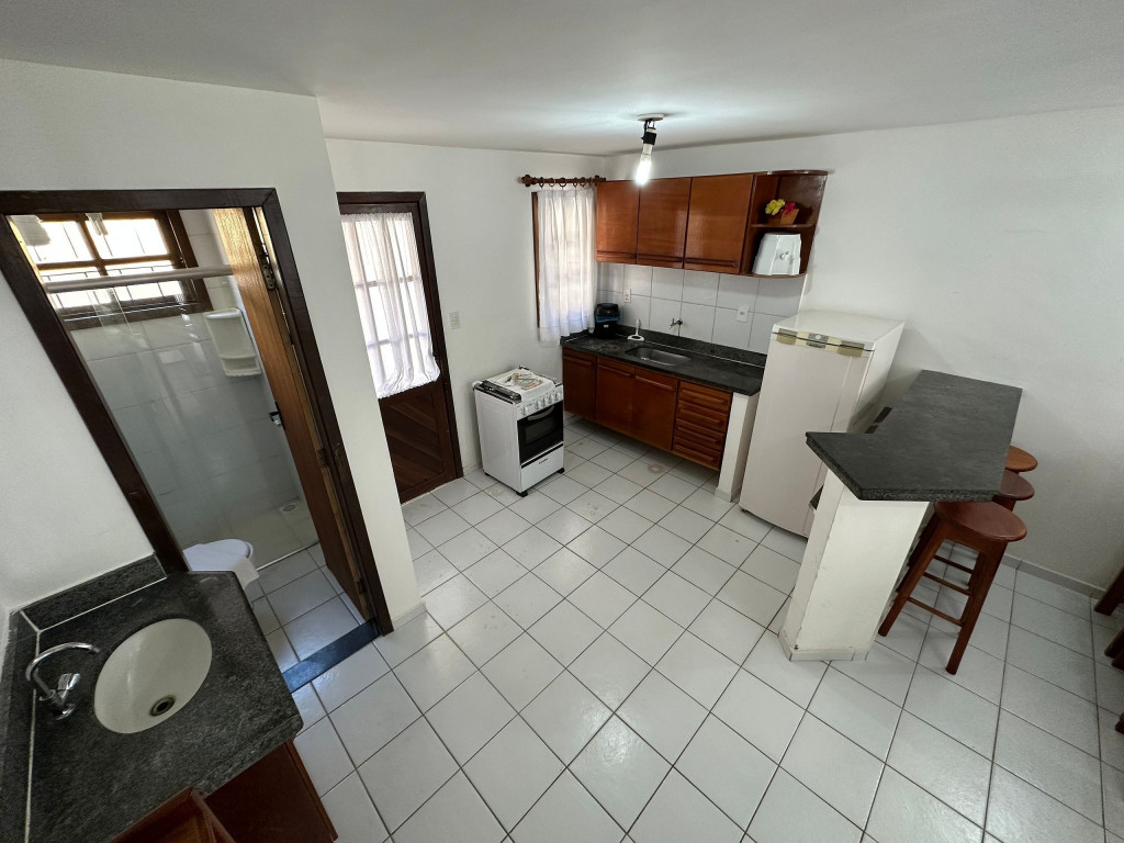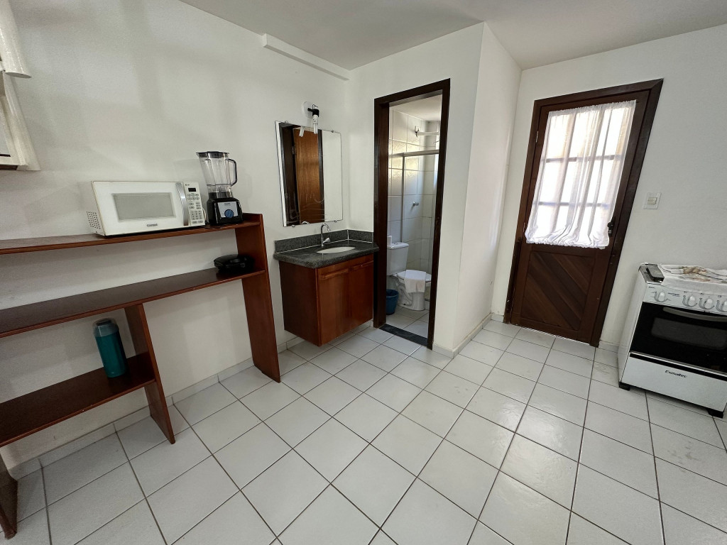 A cozinha é bem completa e oferece eletrodomésticos como liquidificador, micro-ondas,