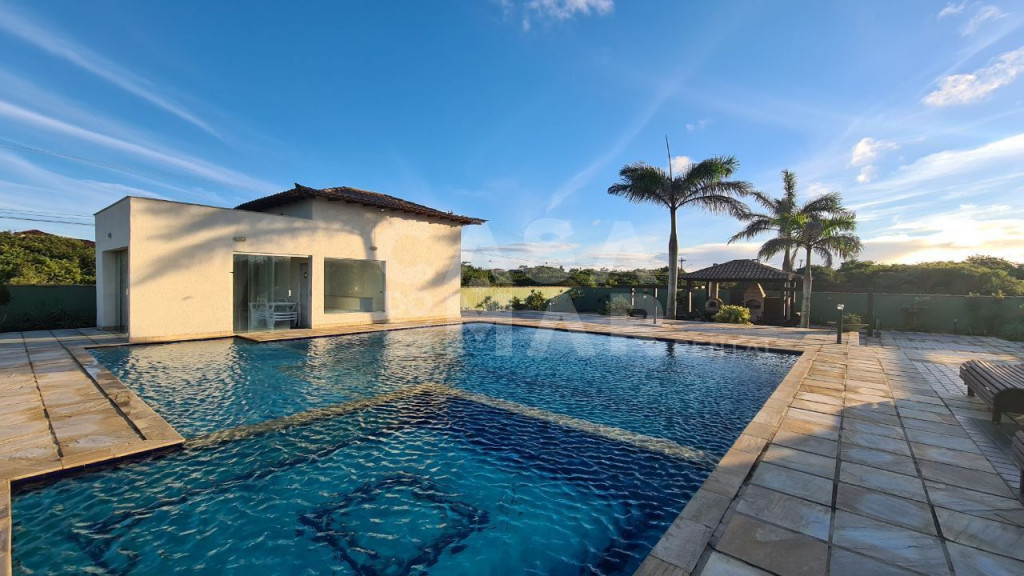 A casa fica em condomínio que possui piscina, sauna, churrasqueira, portaria 24 horas.