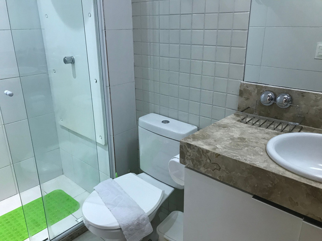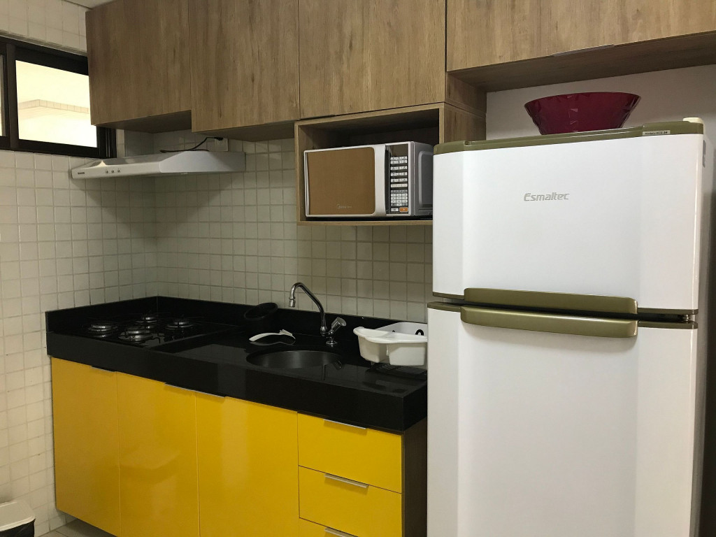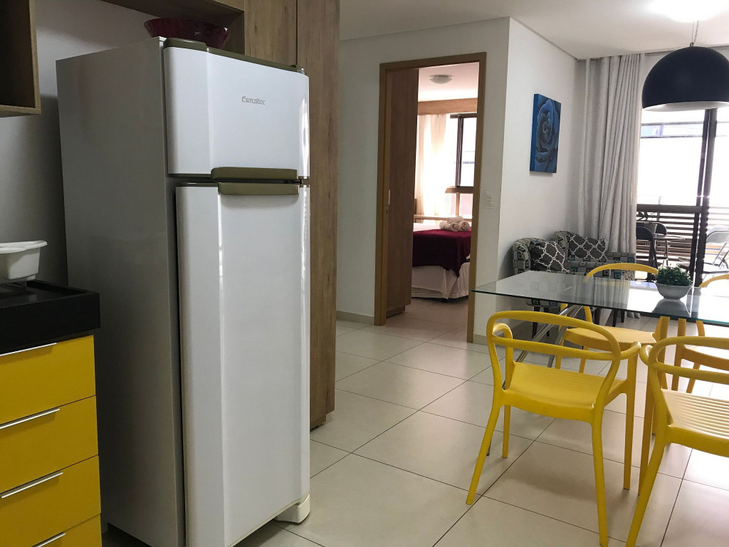 O flat é mobiliado, decorado e equipado com eletrodomésticos e utensílios para preparo de refeições, além de dispor de enxoval completo de lençóis, toalhas e travesseiros para a sua entrada.