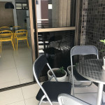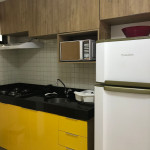 Possui cozinha equipada com micro-ondas, liquidificador, geladeira, cooktop, sanduicheira, cafeteira, louças e talheres.