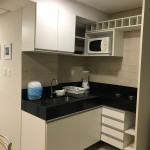 O flat é mobiliado, decorado e equipado com eletrodomésticos utensílios para preparo de refeições, além de dispor de enxoval completo de lençóis, toalhas e travesseiros para a sua entrada.