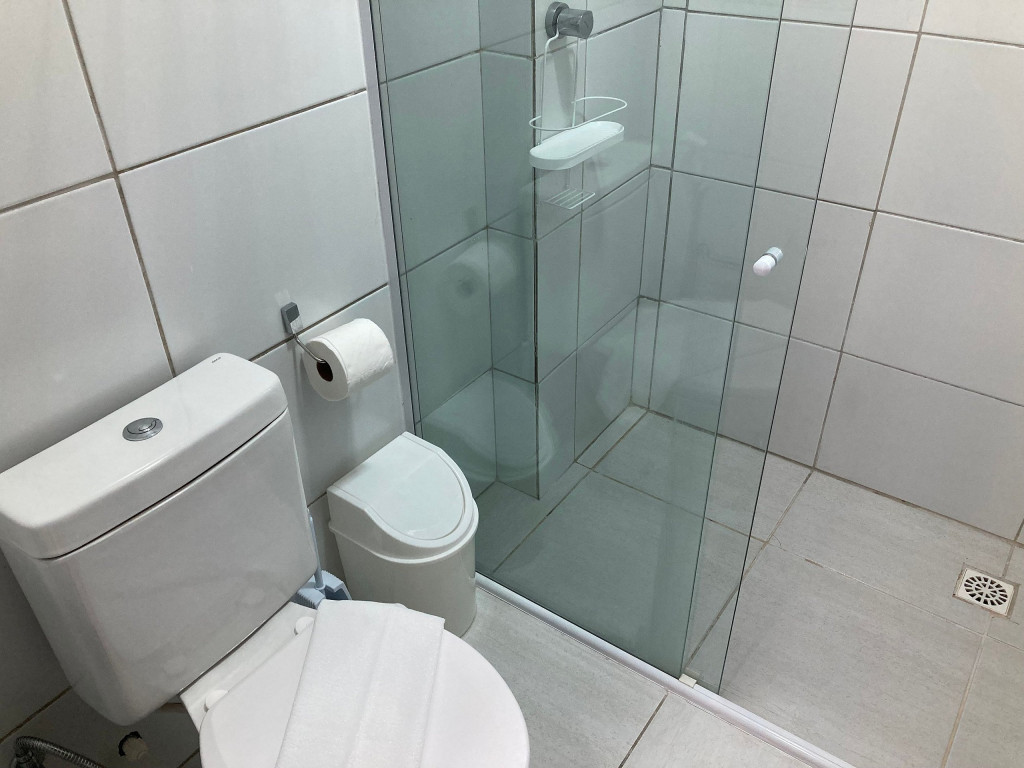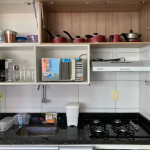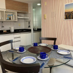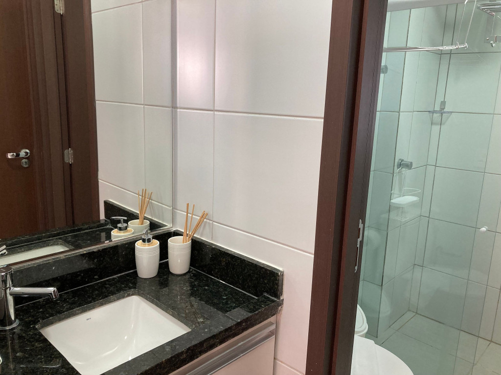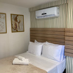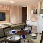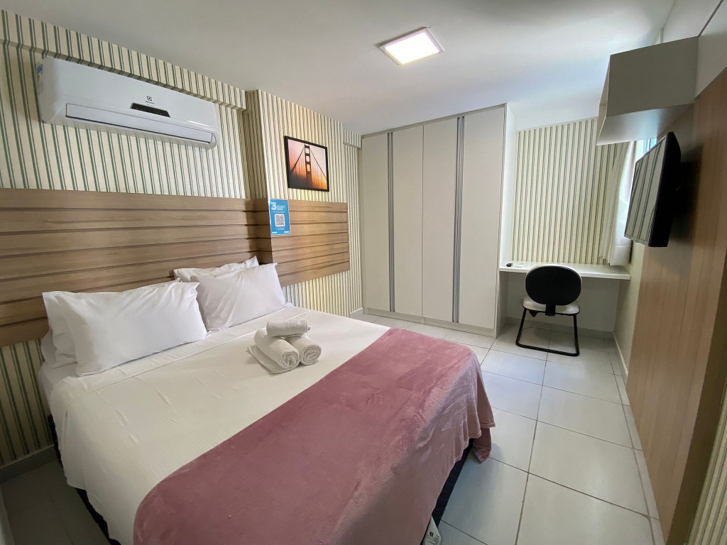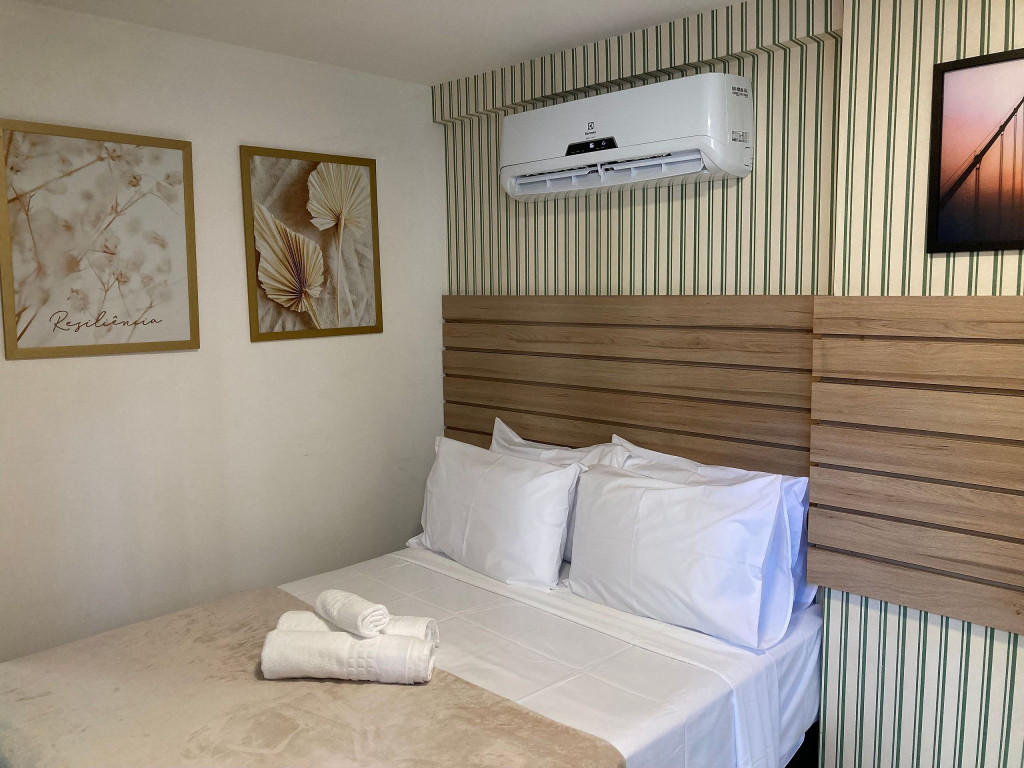 O flat é mobiliado e equipado com utensílios para preparo de refeições como lanches e bebidas, além de dispor de enxoval completo de lençóis, toalhas e travesseiros para a sua entrada.Possui cozinha compacta equipada com micro-ondas, liquidificador, geladeira, cooktop, sanduicheira, cafeteira, louças e talheres.