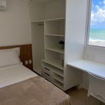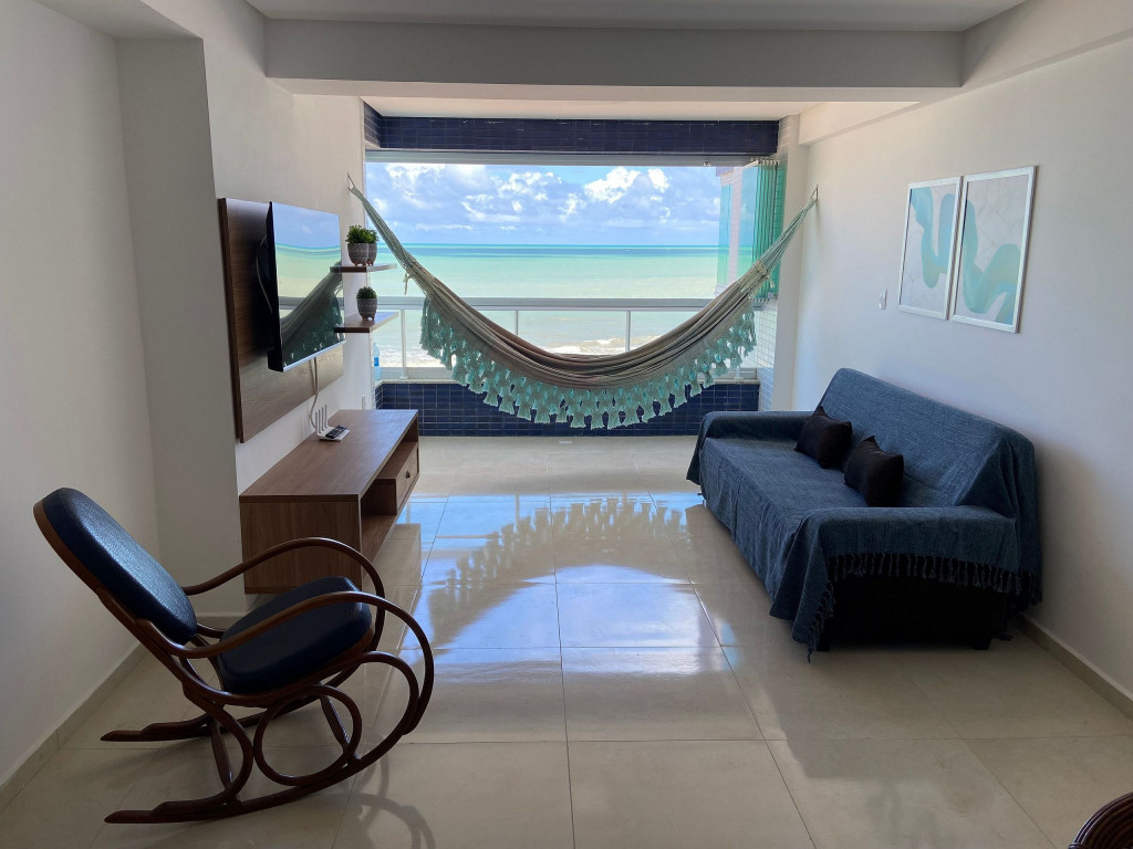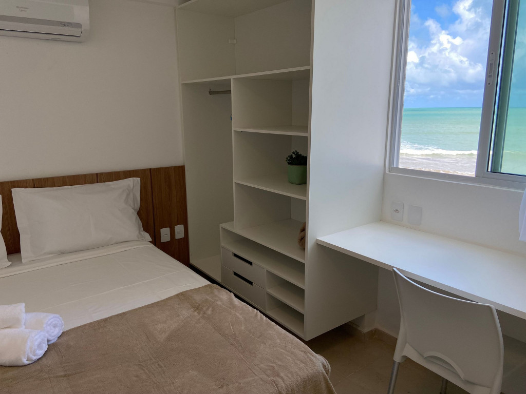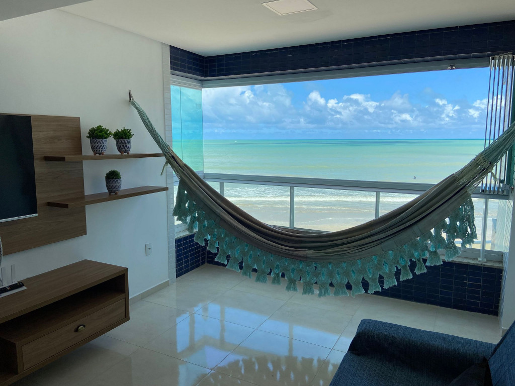 Apartamento super charmoso, pé na areia no Bessa, com vista incrível do mar.Possui duas suítes com ar condicionado, Smart TV, cama casal, guarda roupa com cabides, cozinha americana totalmente equipada, sala com sofá cama, Smart TV nos quartos e na sala, mesa e cadeiras para refeições. Banheiros com chuveiro elétrico, ducha higiênica, secador de cabelo e espelho.