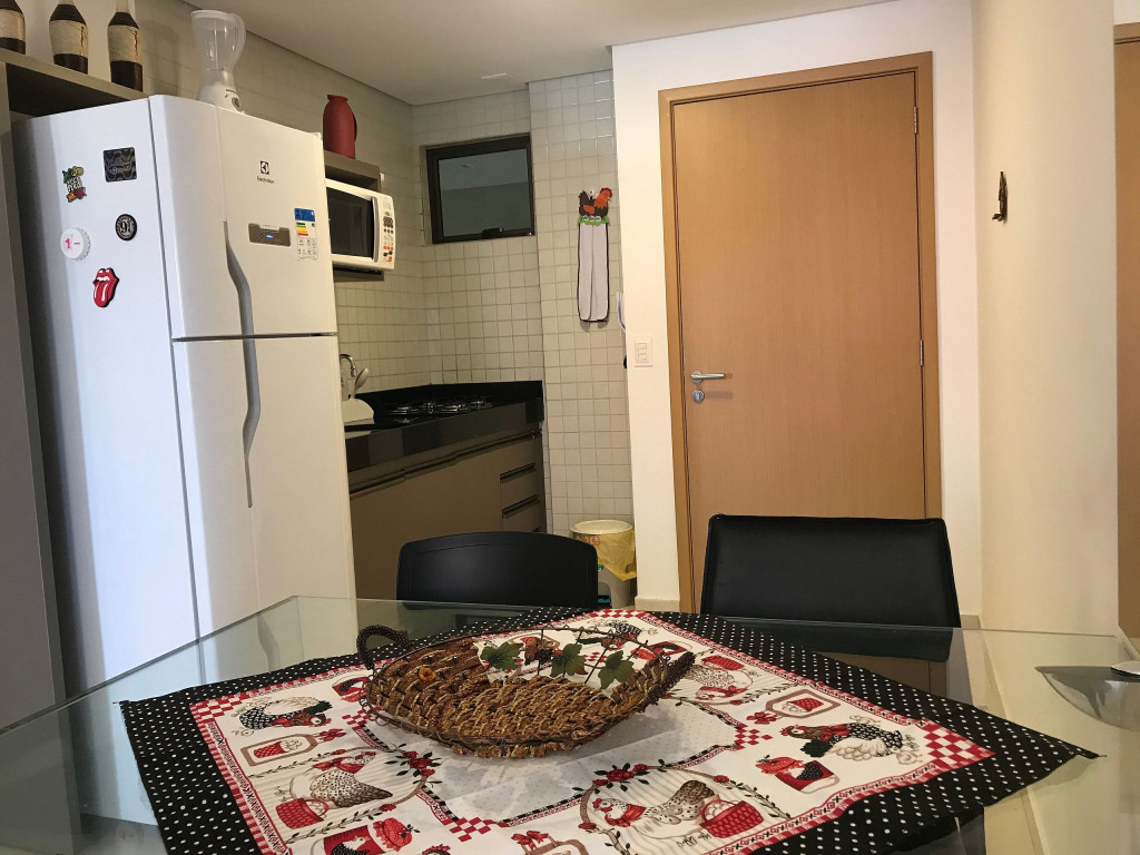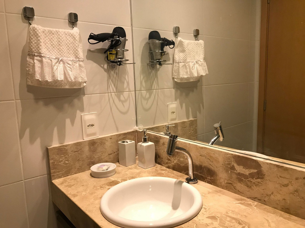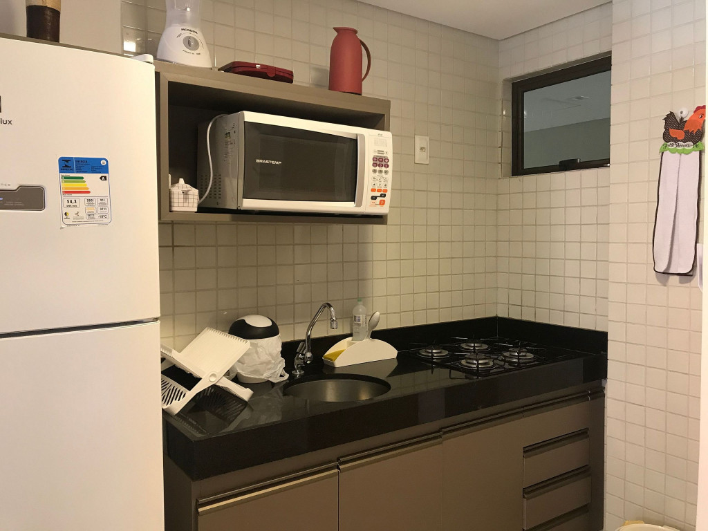 O flat é mobiliado, decorado e equipado com eletrodomésticos e utensílios para preparo de refeições, além de dispor de enxoval completo de lençóis, toalhas e travesseiros para a sua entrada.