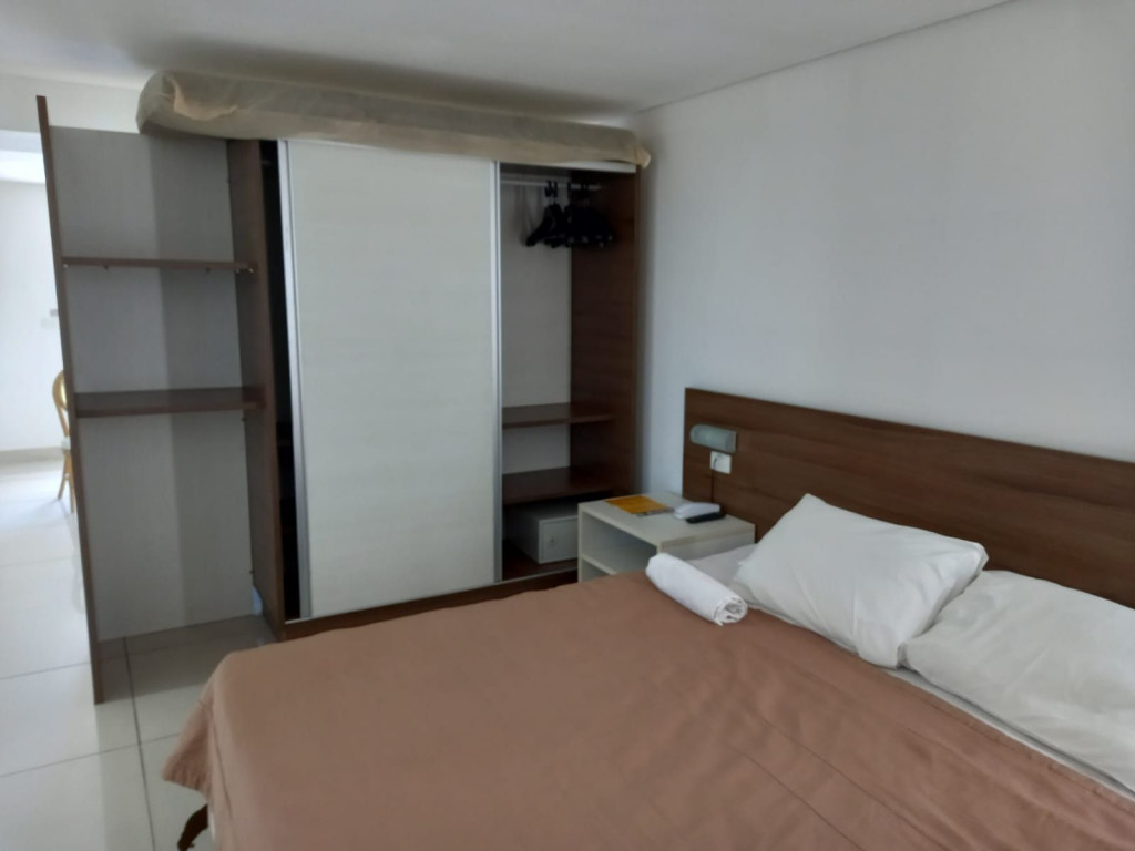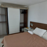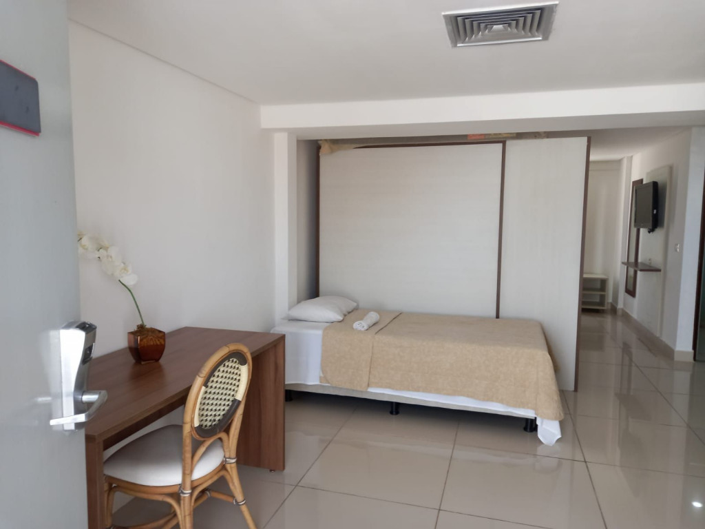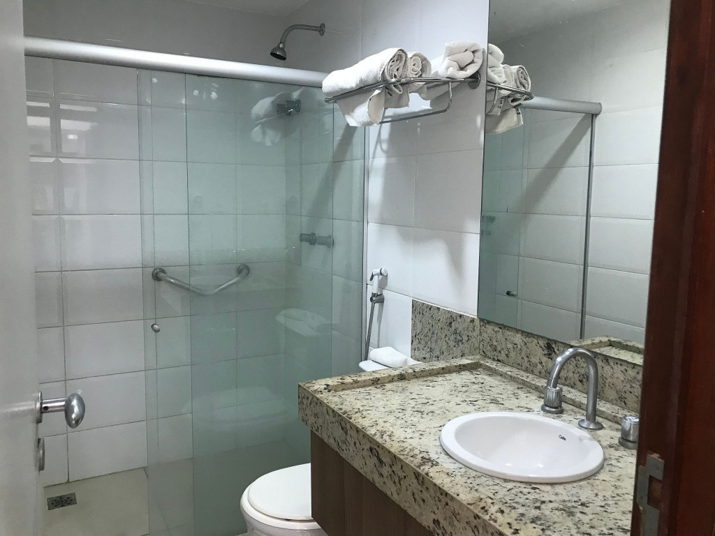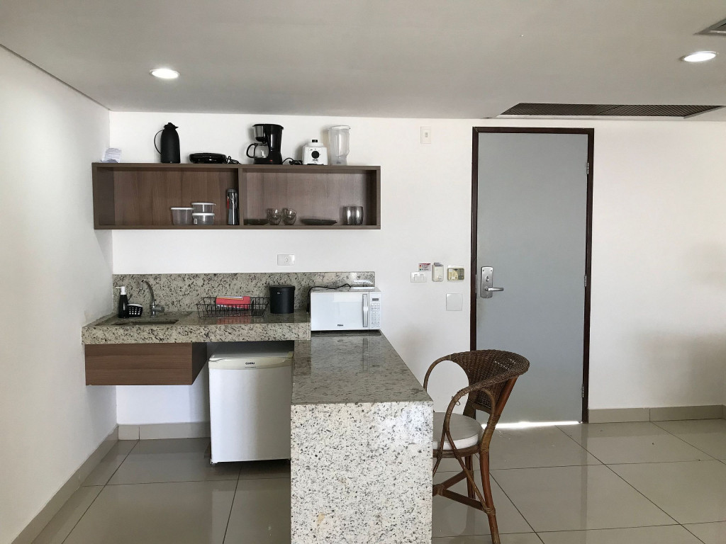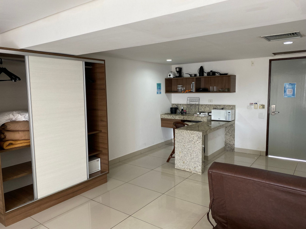 O flat é mobiliado, decorado e equipado com eletrodomésticos e utensílios para preparo de refeições, além de dispor de enxoval completo de lençóis, toalhas e travesseiros para a sua entrada.