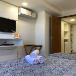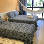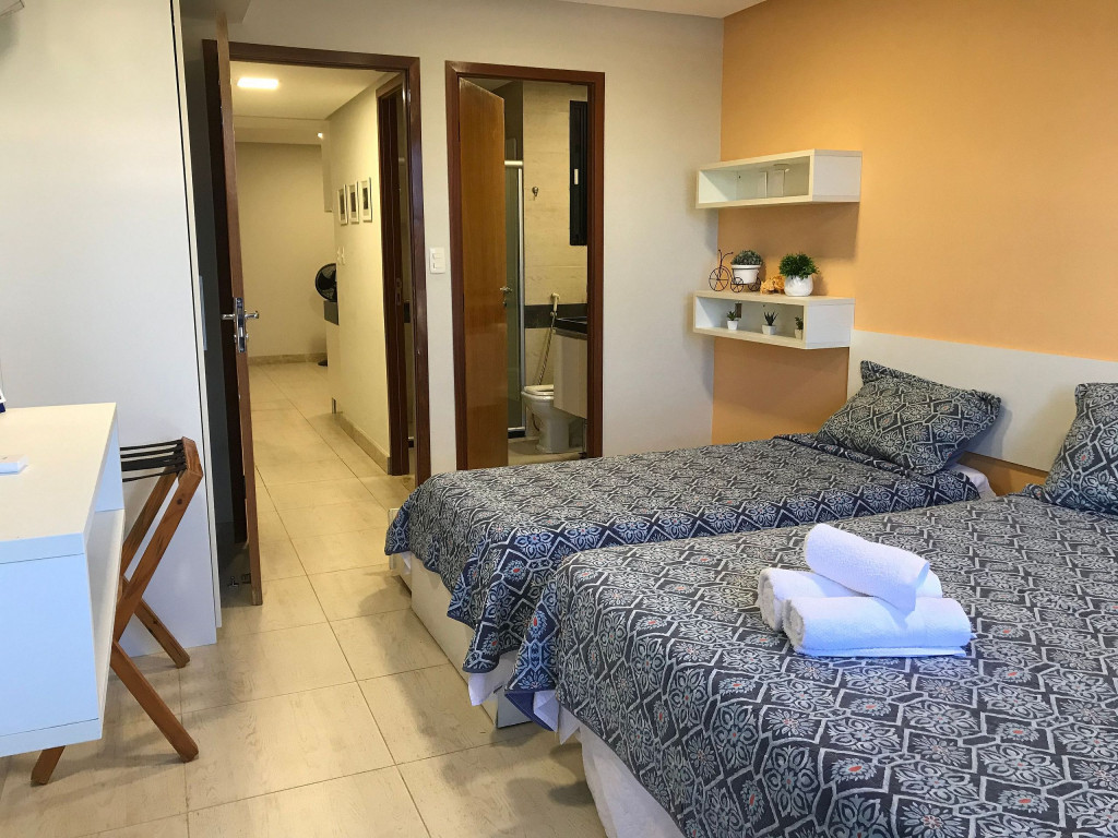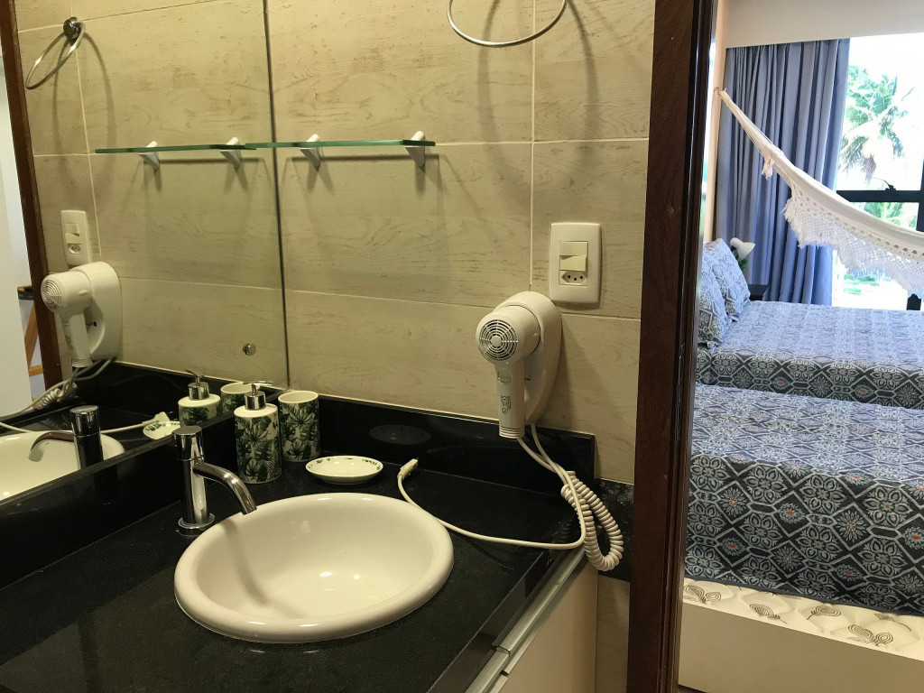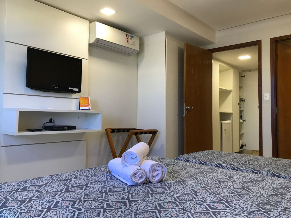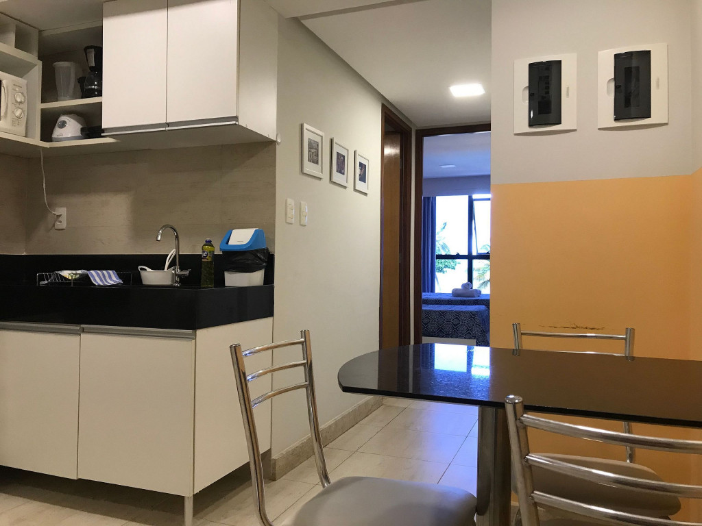 O flat é mobiliado, decorado e equipado com eletrodomésticos utensílios para preparo de refeições, além de dispor de enxoval completo de lençóis, toalhas e travesseiros para a sua entrada.