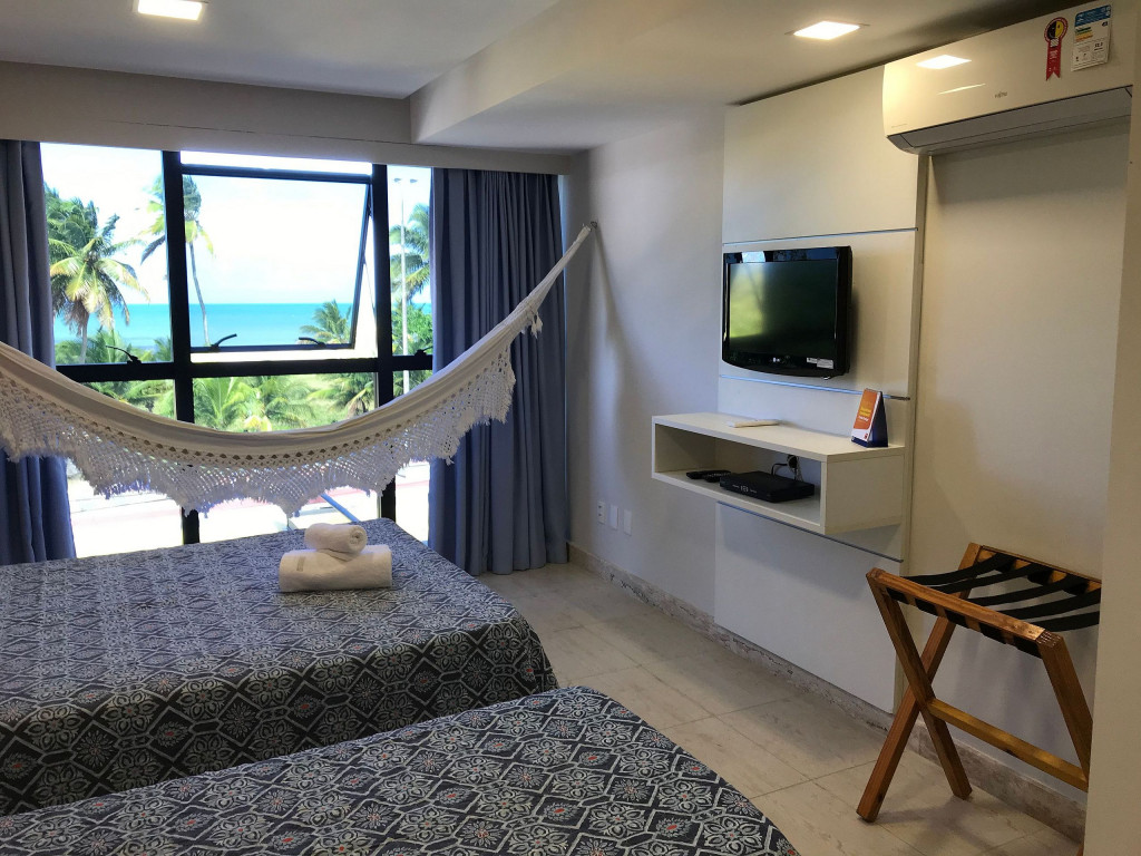 Apartamento bem decorado, frente mar, equipado com cama casal e cama solteiro, acomodações para 04 pessoas.Possui cozinha equipada com eletrodomésticos e utensílios básicos para o preparo de refeições.