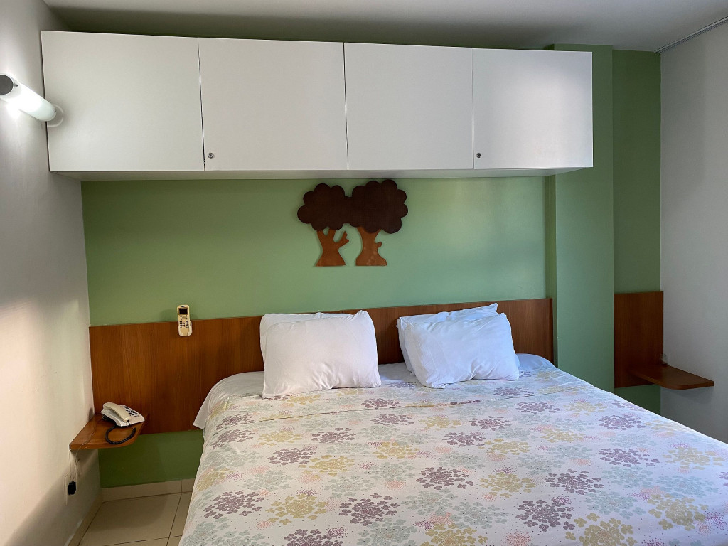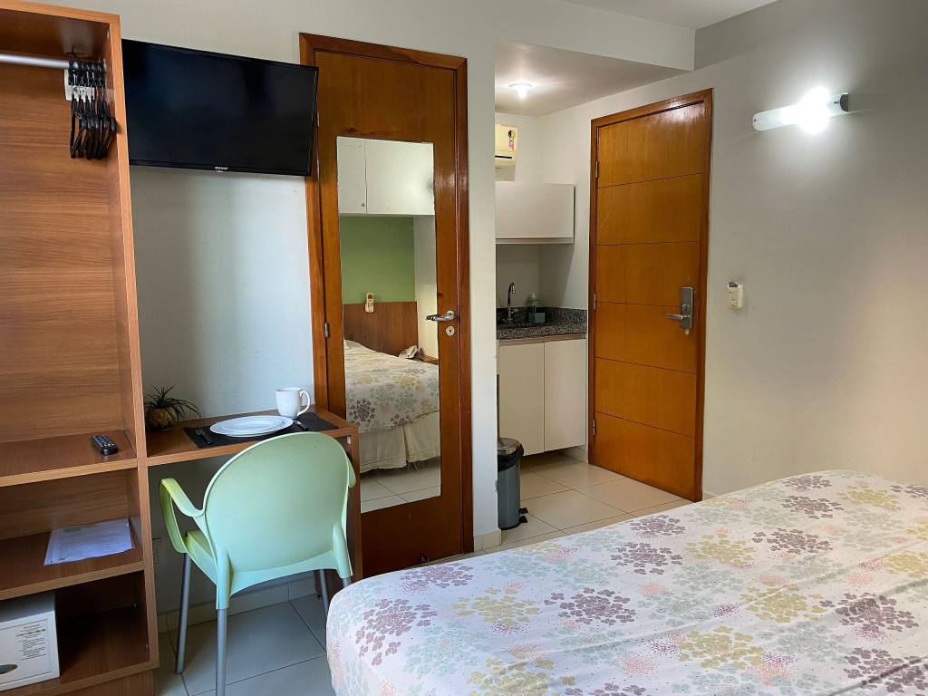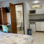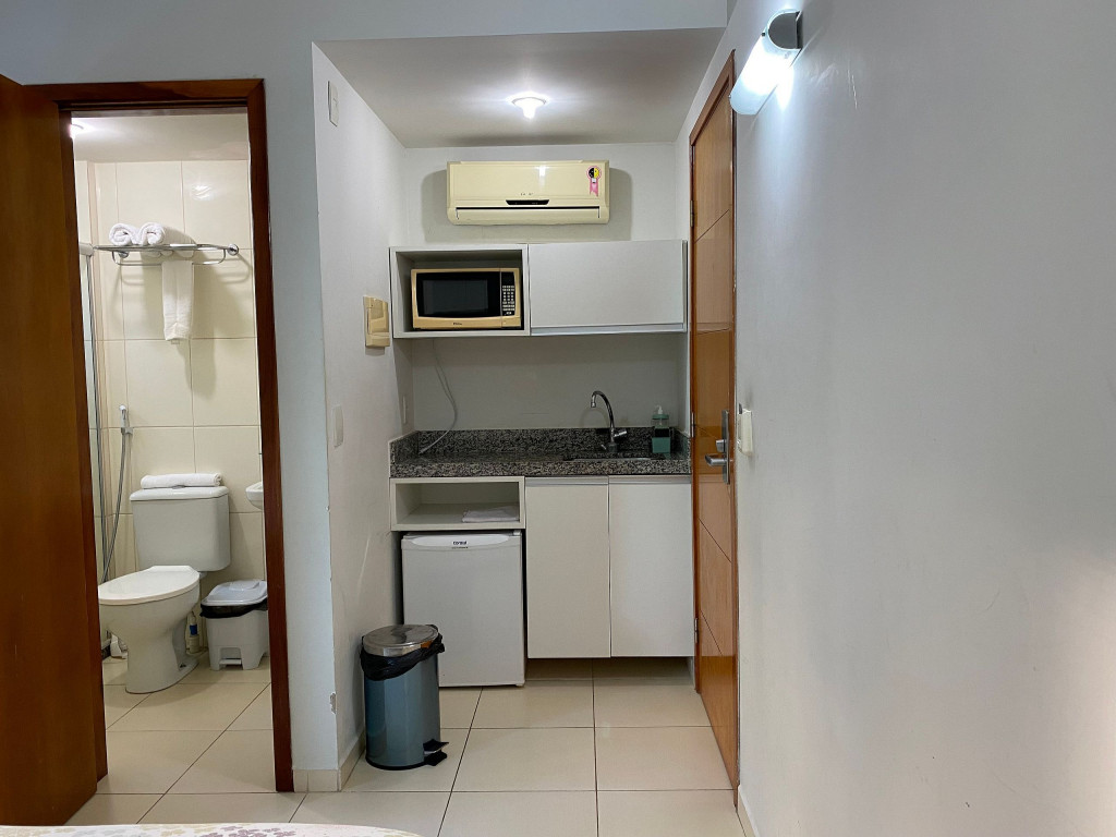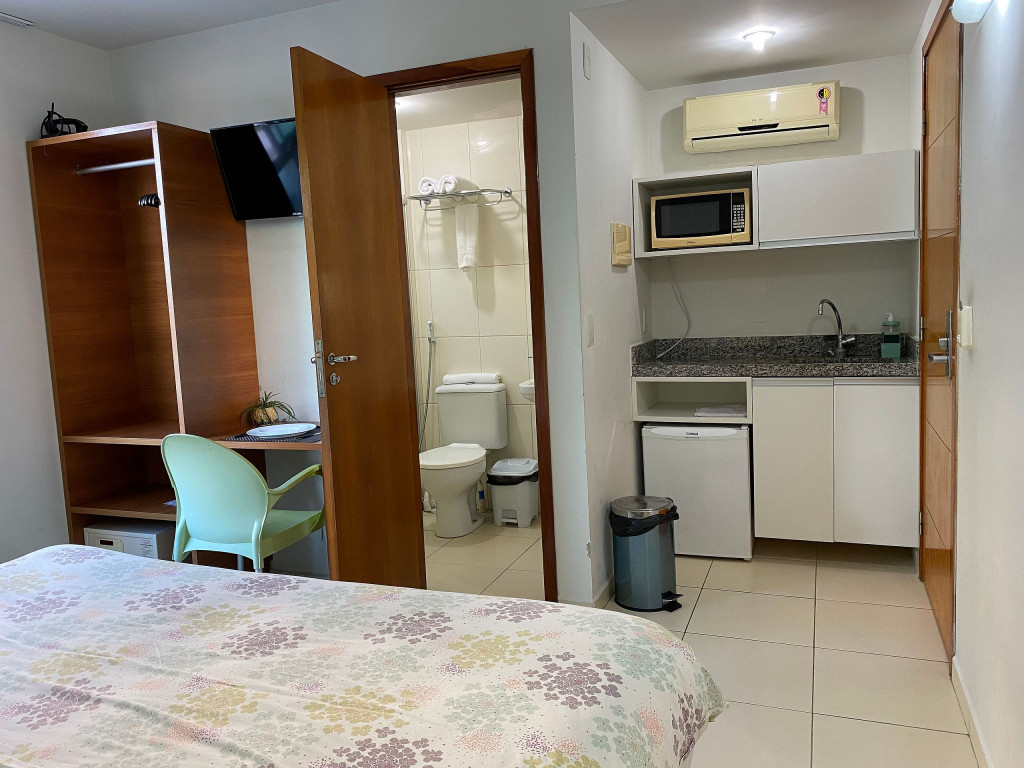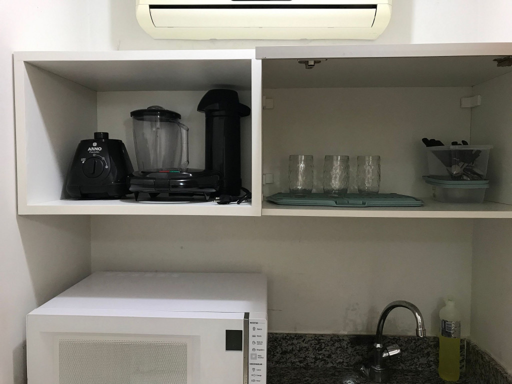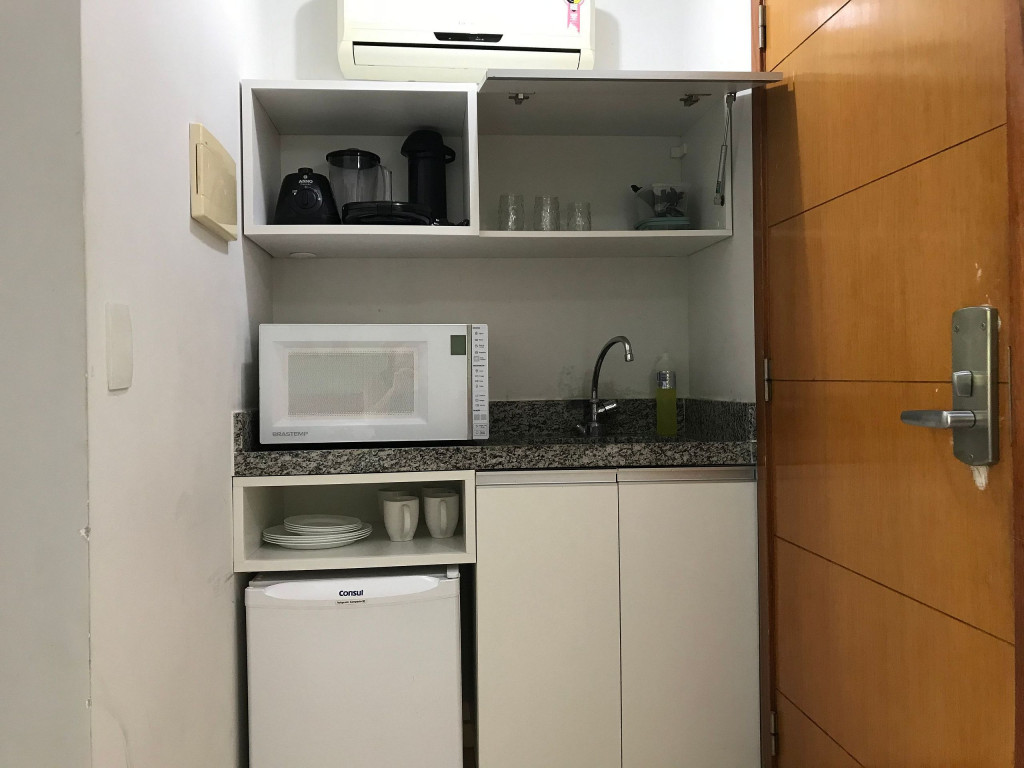 O flat é mobiliado, decorado e equipado com eletrodomésticos utensílios para preparo de refeições, além de dispor de enxoval completo de lençóis, toalhas e travesseiros para a sua entrada.