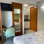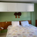 Suíte aconchegante com cama casal, acomodação até 02 pessoas.Possui armário, tv e ar condicionado, além de itens básicos de cozinha como microondas, cafeteira, sanduicheira, frigobar, pratos e talheres.