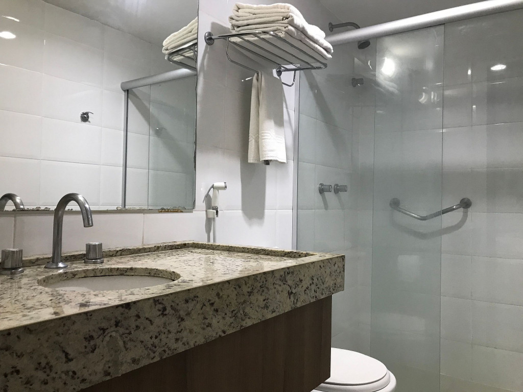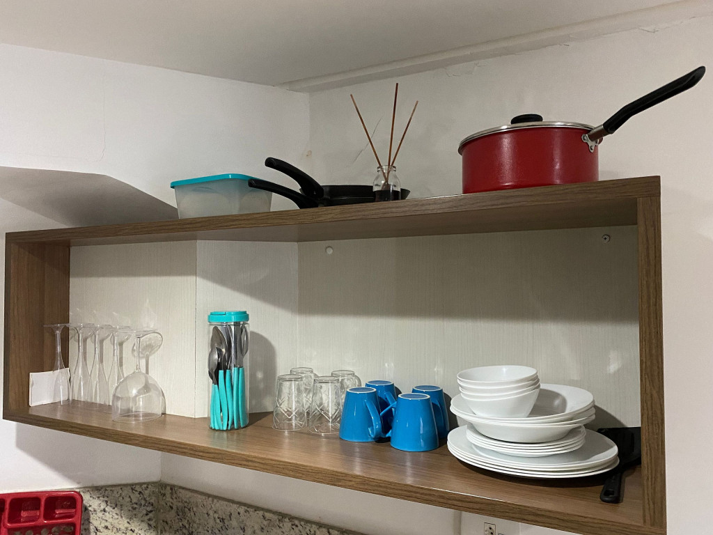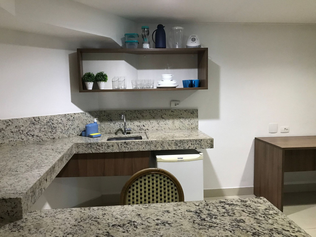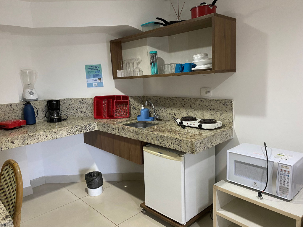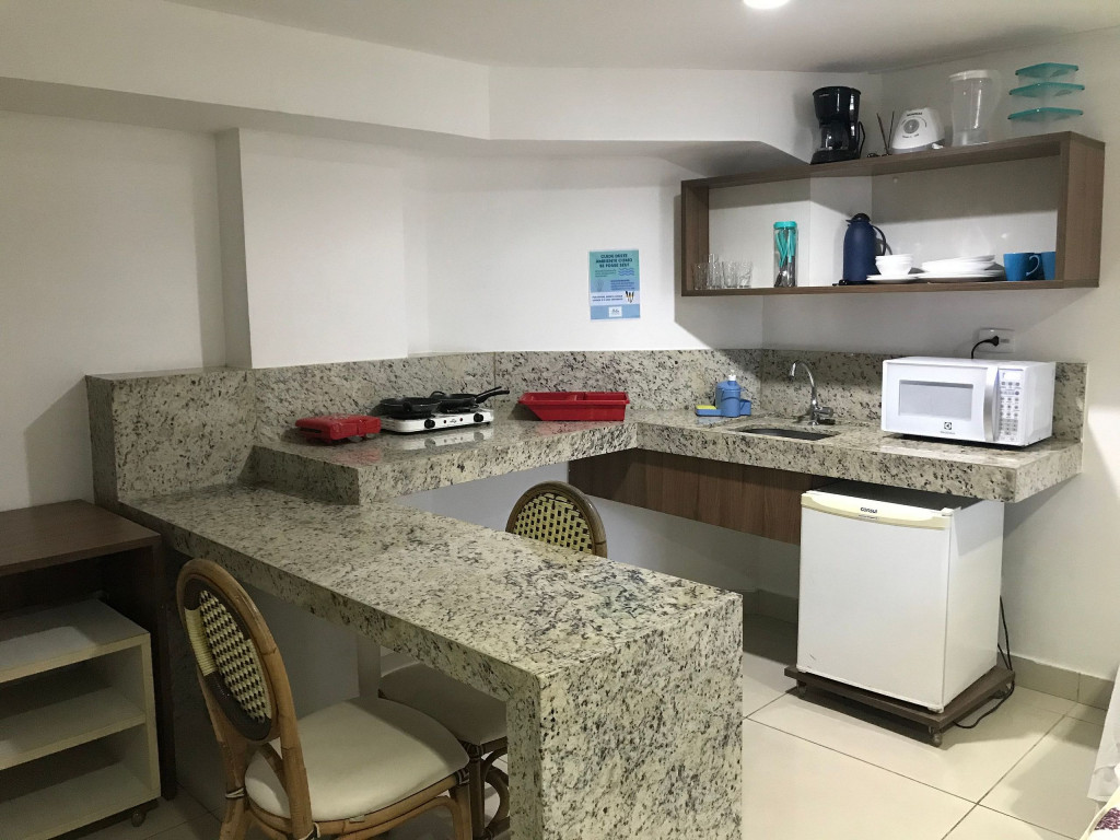 O flat é mobiliado, decorado e equipado com eletrodomésticos e utensílios para preparo de refeições, além de dispor de enxoval completo de lençóis, toalhas e travesseiros para a sua entrada.