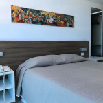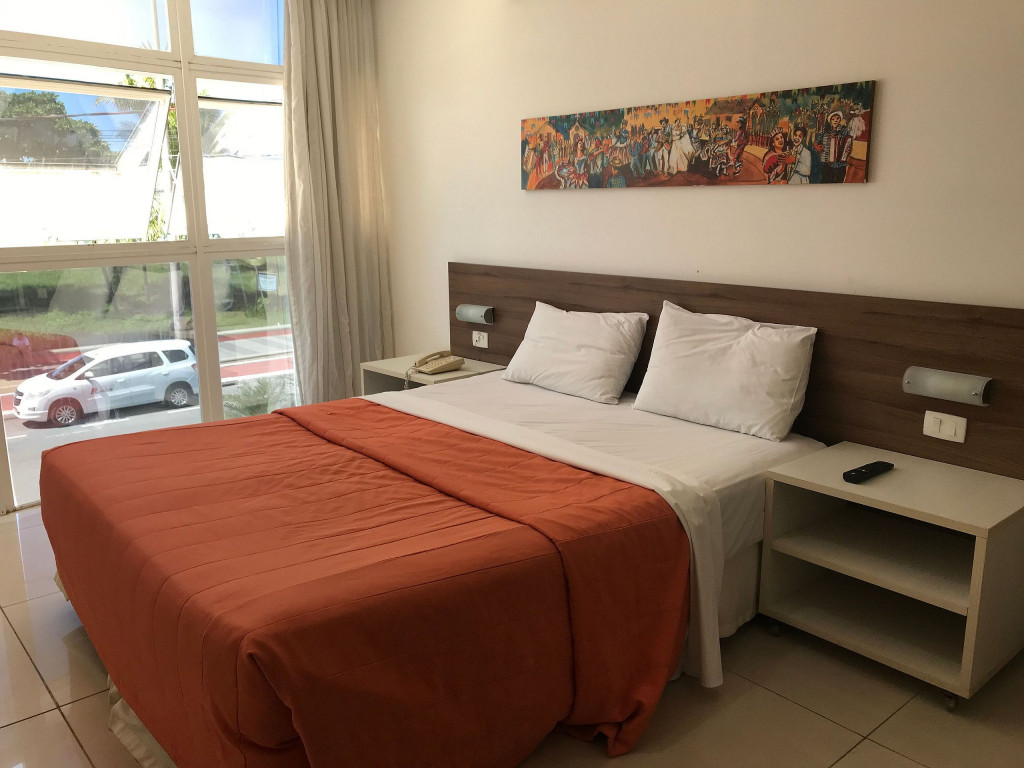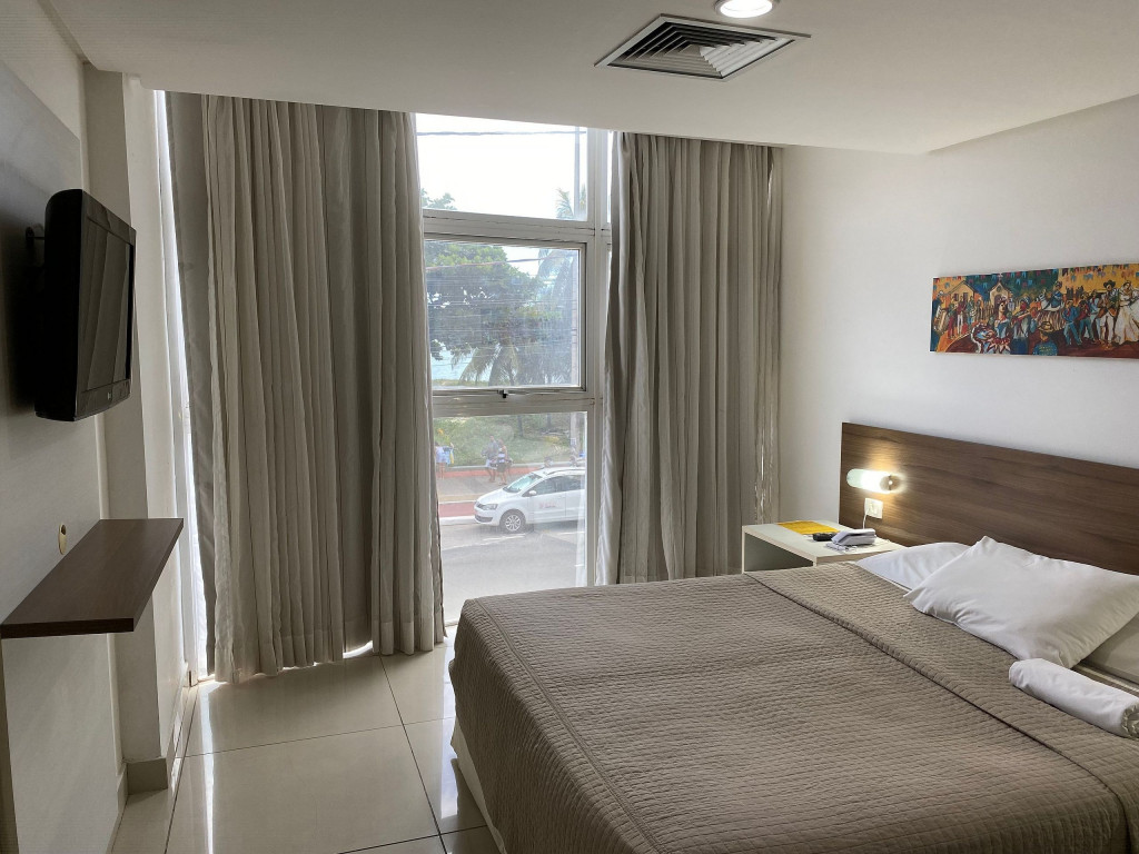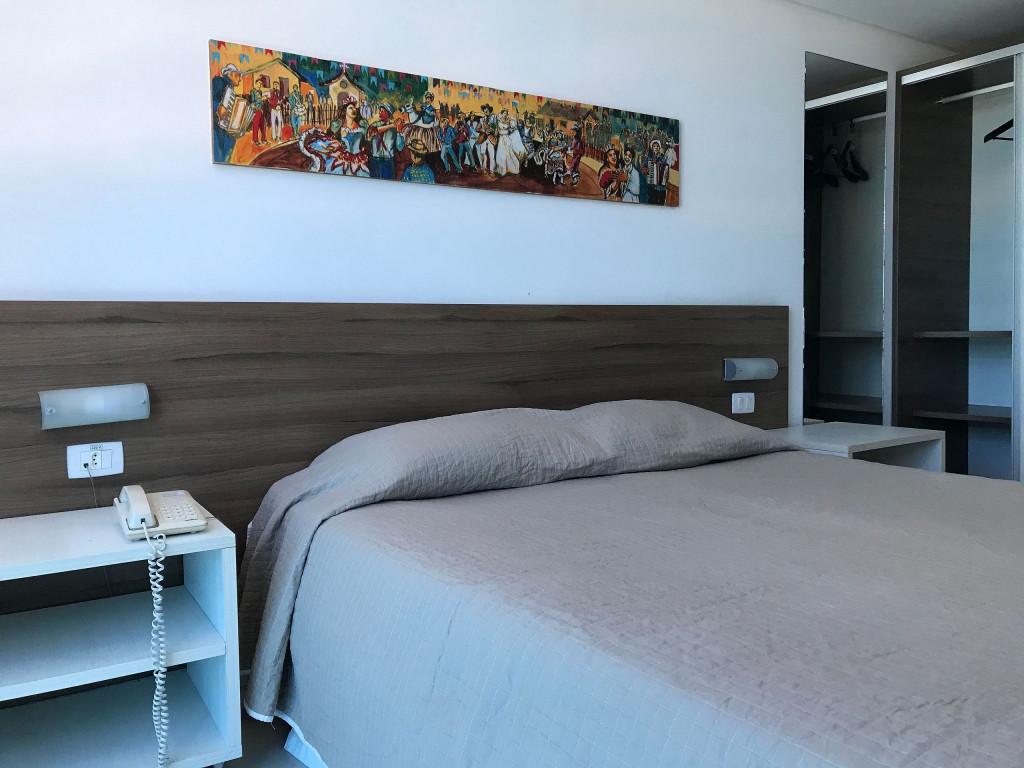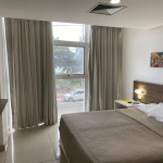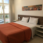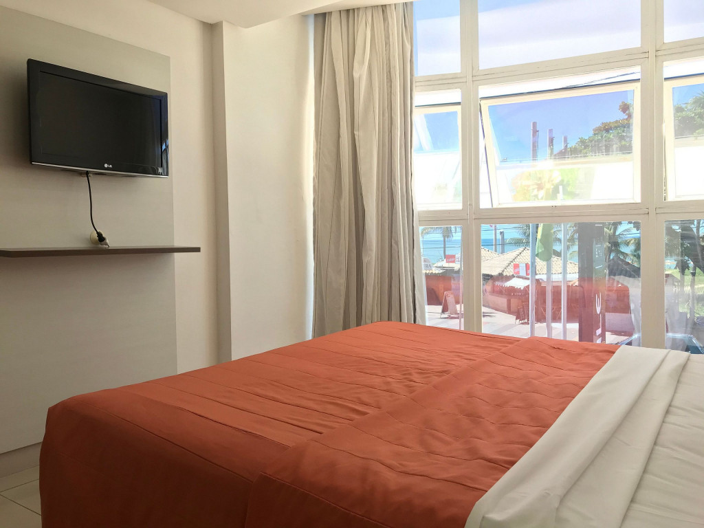 Suíte ampla e confortável, frente mar, possui porta divisória e oferece acomodações para até 04 pessoas. Equipada com 01 cama casal+01 bicama, tv tela plana, ar condicionado central, cozinha compacta com eletrodomésticos e utensílios básicos (ideal para preparar pequenas refeições), closet com cabides, mesa de cabeceira, mesa de trabalho com cadeira.
