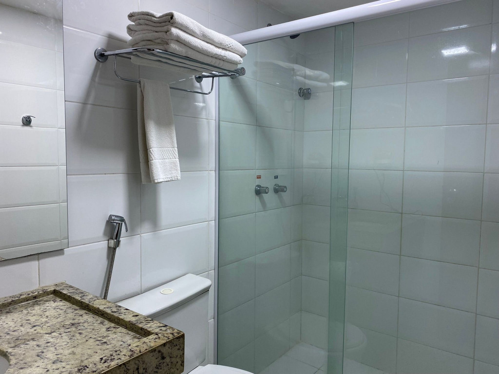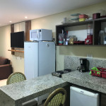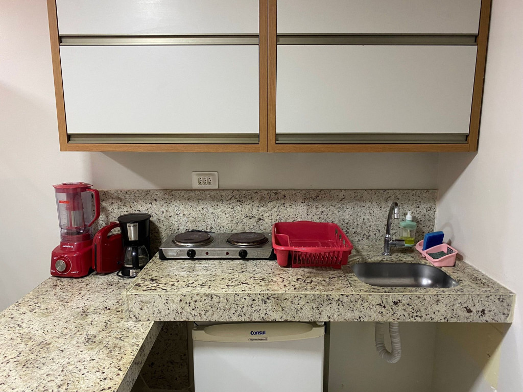O flat é mobiliado, decorado e equipado com eletrodomésticos e utensílios para preparo de refeições, além de dispor de enxoval completo de lençóis, toalhas e travesseiros para a sua entrada.