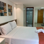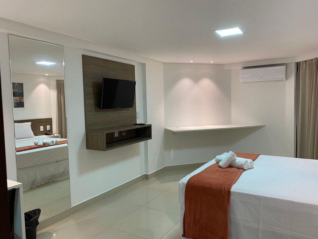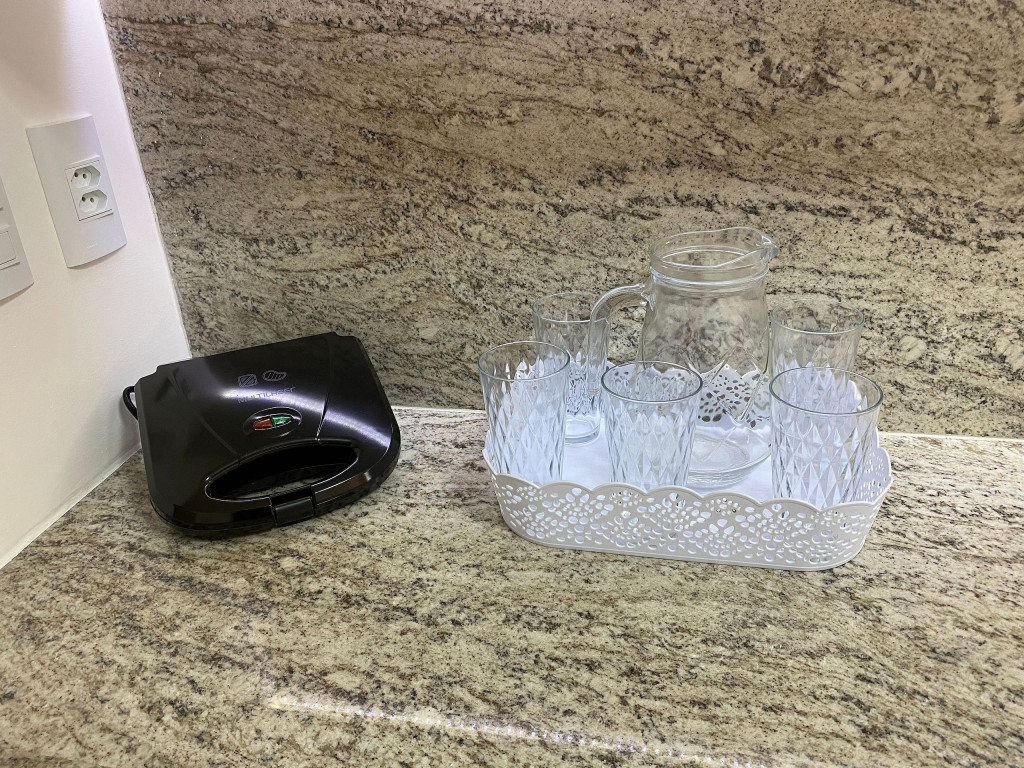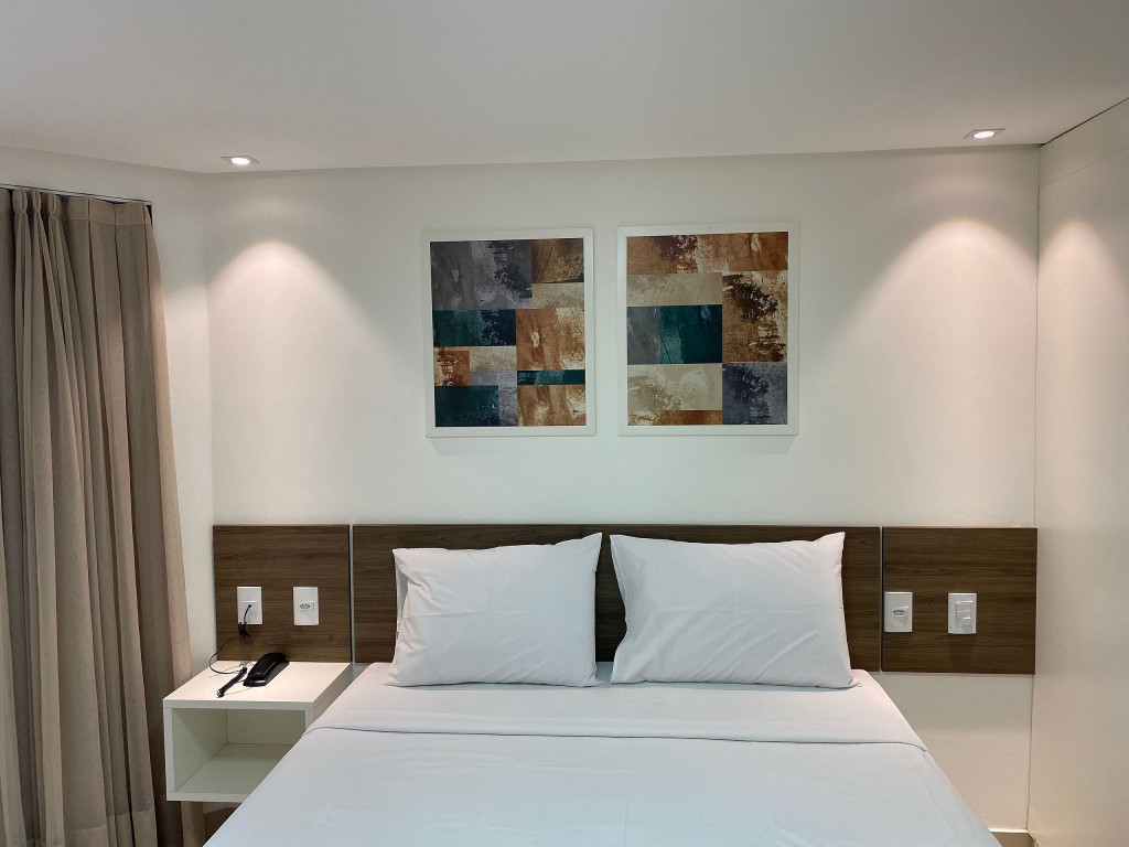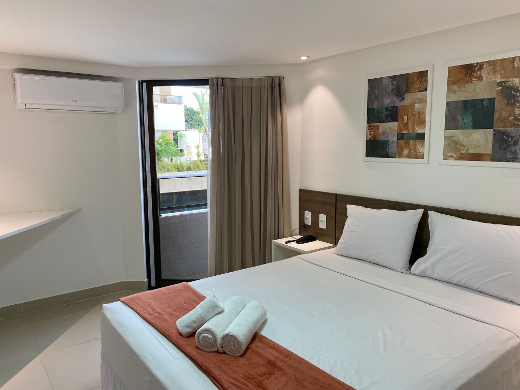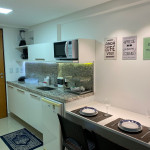 O studio é mobiliado e equipado com microondas, frigobar, cafeteira, liquidificador, louças e talheres , além de dispor de enxoval como lençóis, toalhas e travesseiros para a sua entrada.