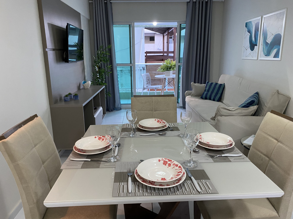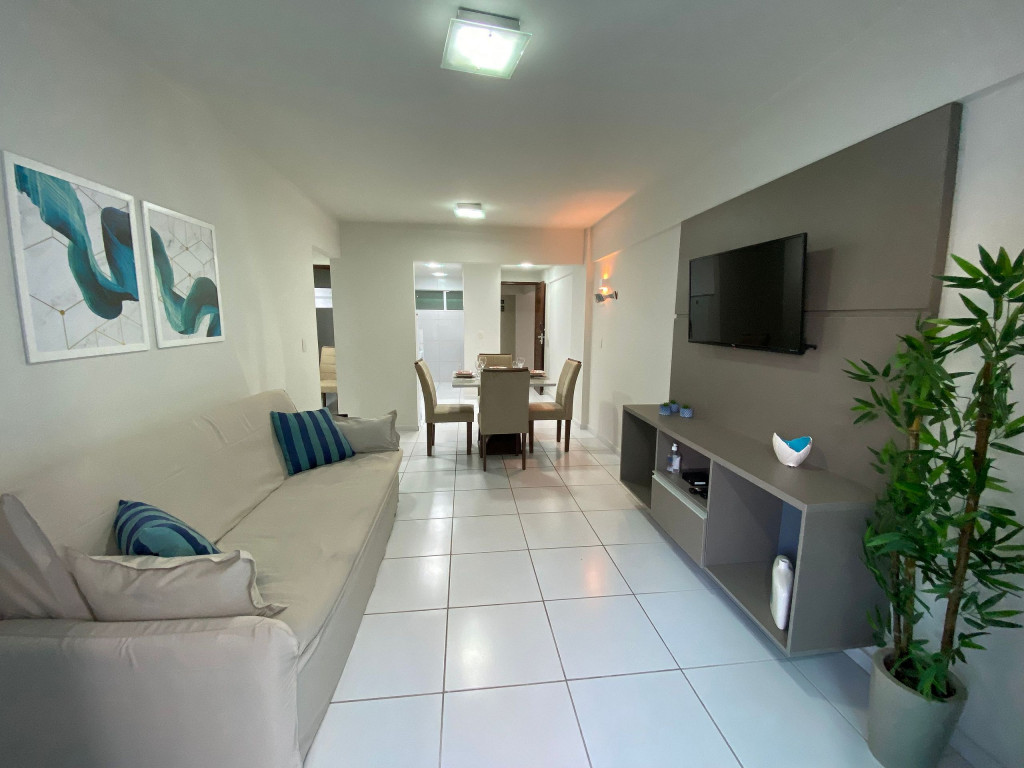 Apartamento totalmente equipado c/2 quartos(sendo 01 suíte), acomodação para até 05 pessoas, possui localização privilegiada, a apenas 100m da praia de Cabo Branco.Ar condicionado e Tv tela plana em um dos dois quartos, sofá cama e Smart TV na sala, varanda e cozinha completa. Banheiros com chuveiro elétrico, armários e espelho.Disponibilizamos 01 vaga de garagem privativa e gratuita, wifi, piscina e elevador.AVISOS: A piscina encontra-se interditada temporariamente para manutenção ( até Março/24) Obra sendo realizada em um dos apts/sujeito a barulho durante o dia( até final de janeiro)