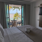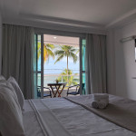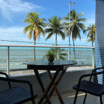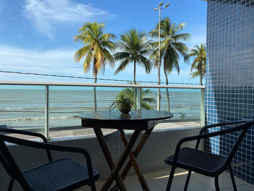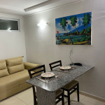 Flat, quarto e sala, decorado, mobiliado e equipado, possui varanda frente mar, acomodações para 04 pessoas.