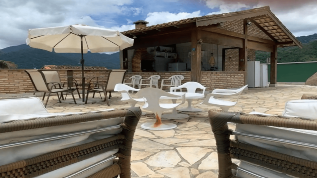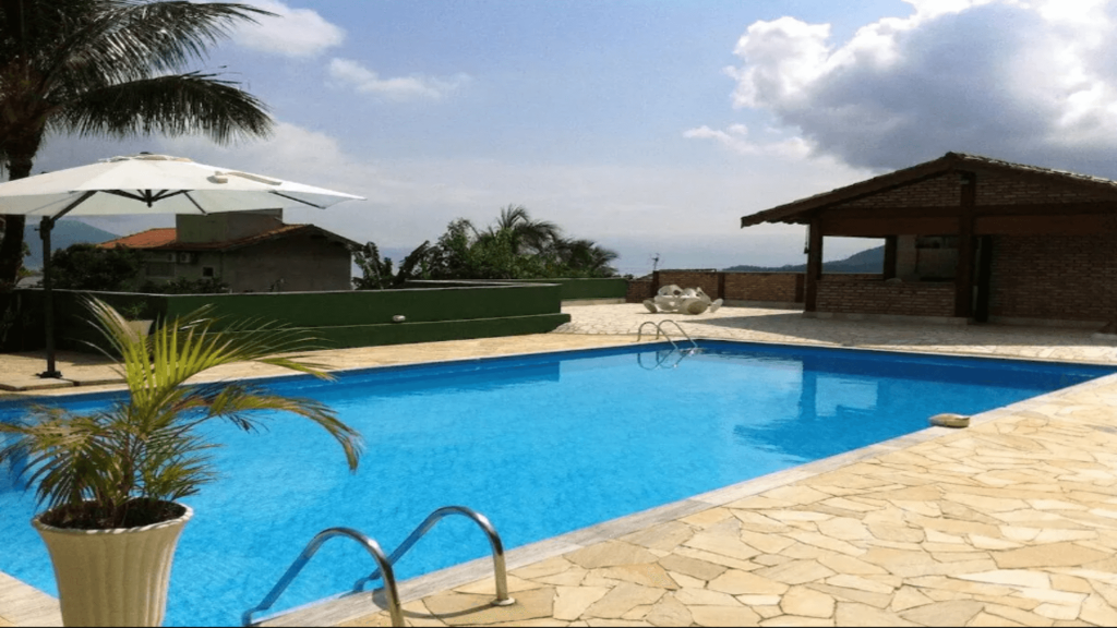Toda a área de lazer está disponível para os hóspedes, incluindo piscina e churrasqueira, que são de uso compartilhado.