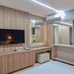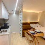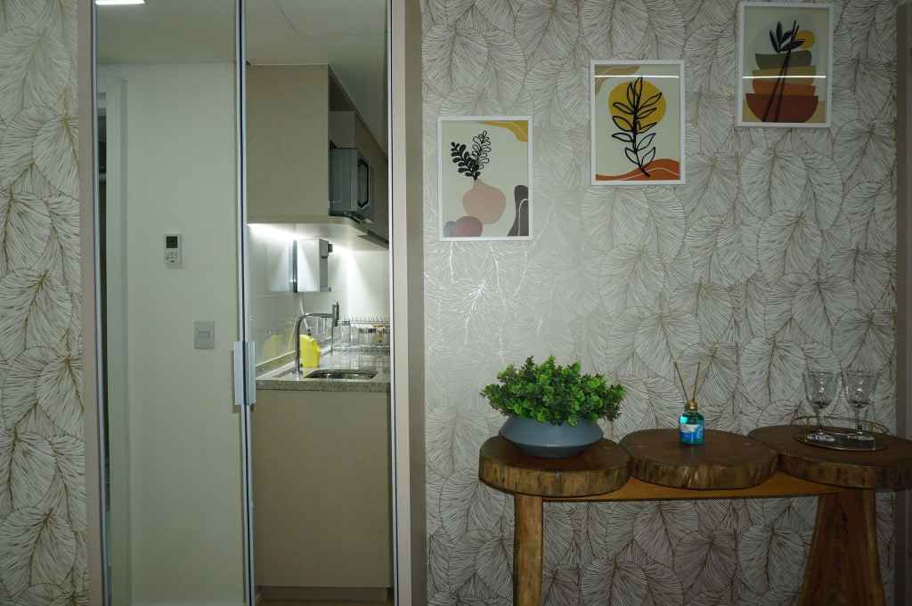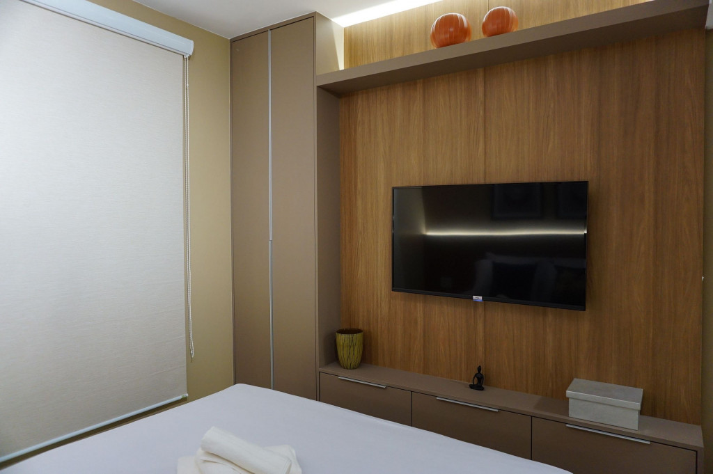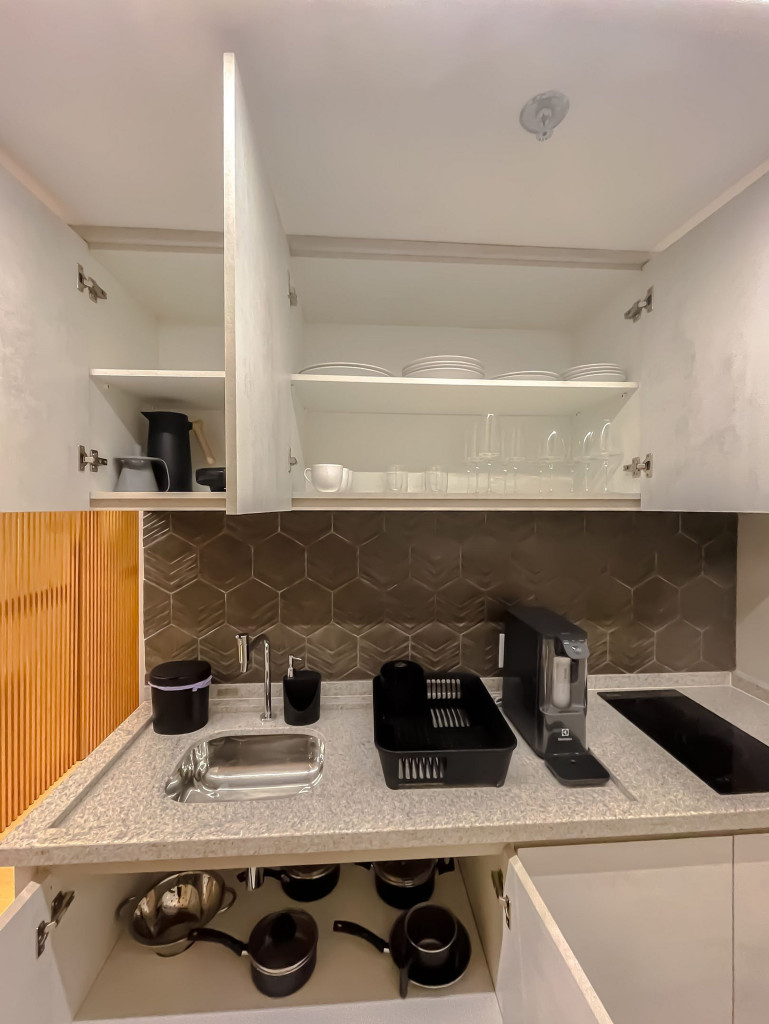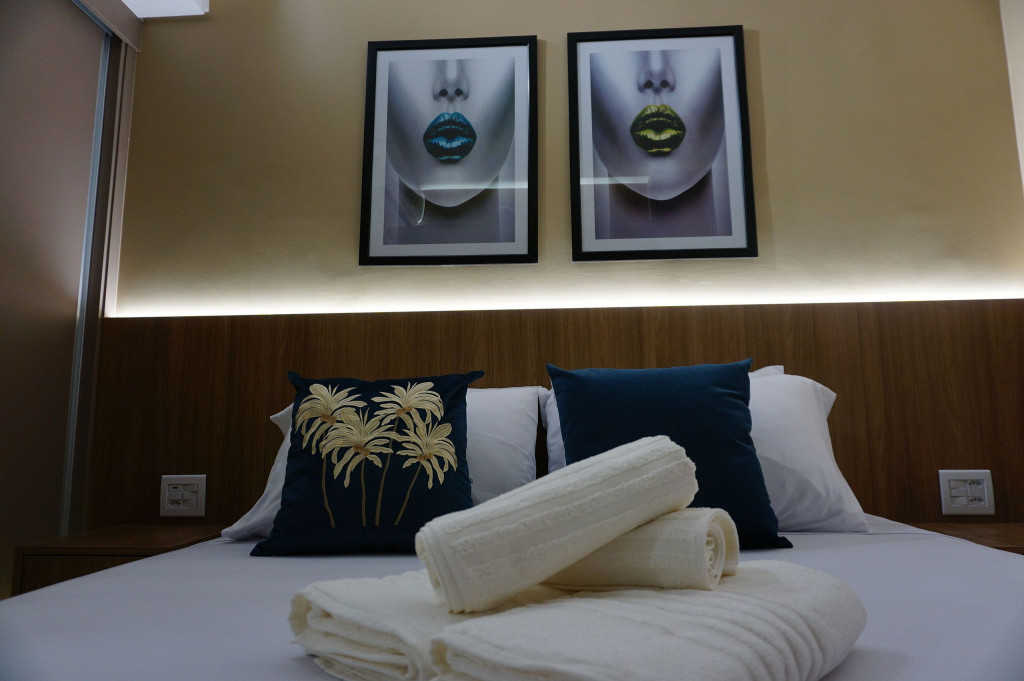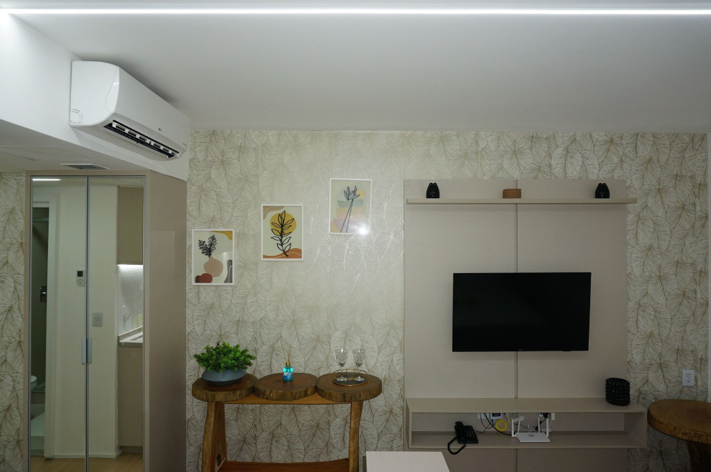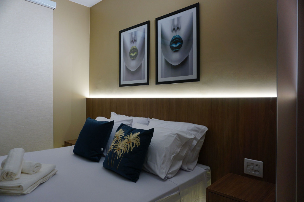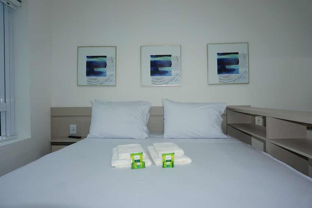 Totalmente exclusivo ao hóspede, o studio conta com Smartv, ar condicionado. Cozinha repleta em armários, diversos utensílios como: pratos, taças para vinho, copos, panelas, talheres, garrafa para café e sanduicheira. Cama de casal, roupa de cama premium, travesseiros e guarda-roupa. Banheiro com toalhas, sabonete e papel higiênico. Áreas em comum do condomínio estão sujeitas a agendamento na portaria (Lavanderia, Academia, Salão de jogos, Área de Churrasco).