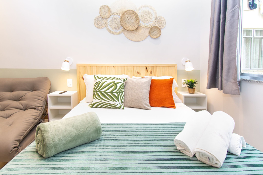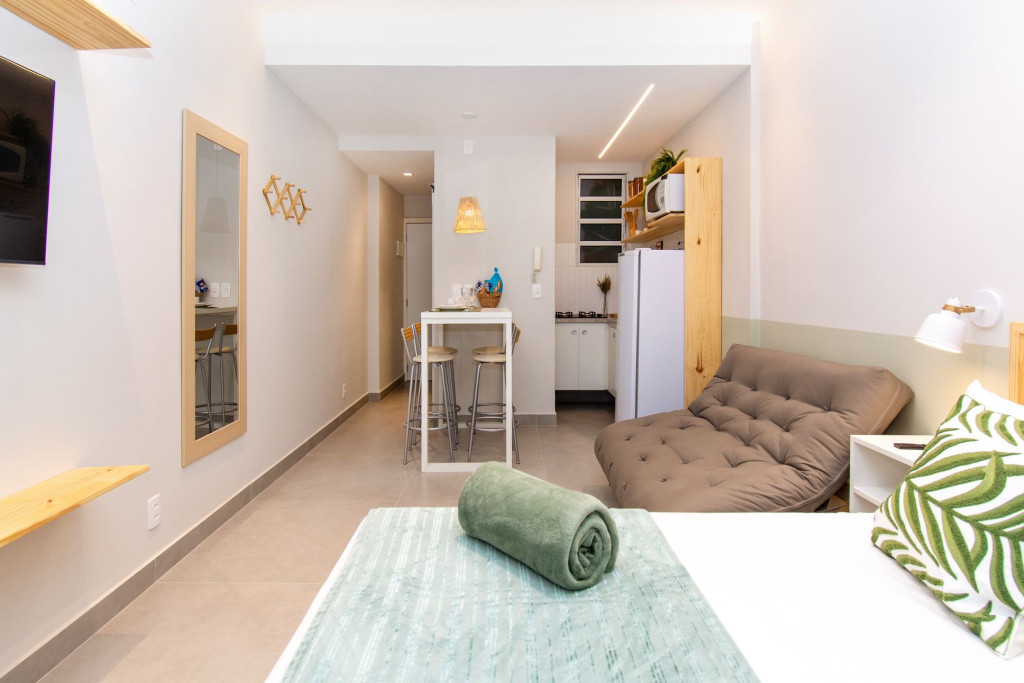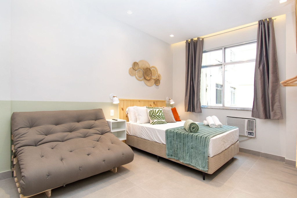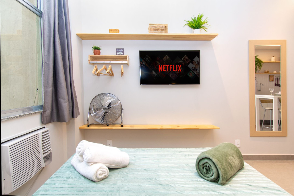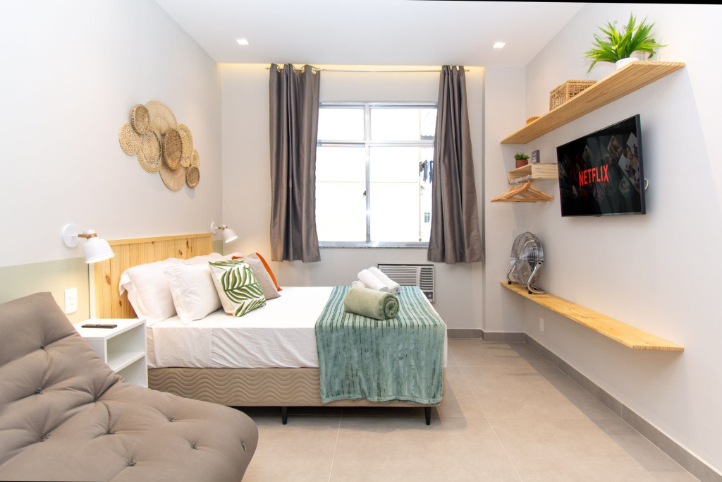 Boutique Copacabana é nosso apartamento charmoso na quadra da praia. Completo, desde roupas de cama e banho a utensílios de cozinha, eletrônicos, tudo que você imaginar, sem custo adicional! Se precisar algo específico, pode pedir, teremos prazer em ajudar!