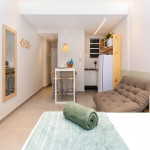 No entorno há restaurantes desde baratos a charmosos, além de mercados, farmácias, lojas e tudo o que você possa precisar de um bairro comum, praticamente 24h por dia.