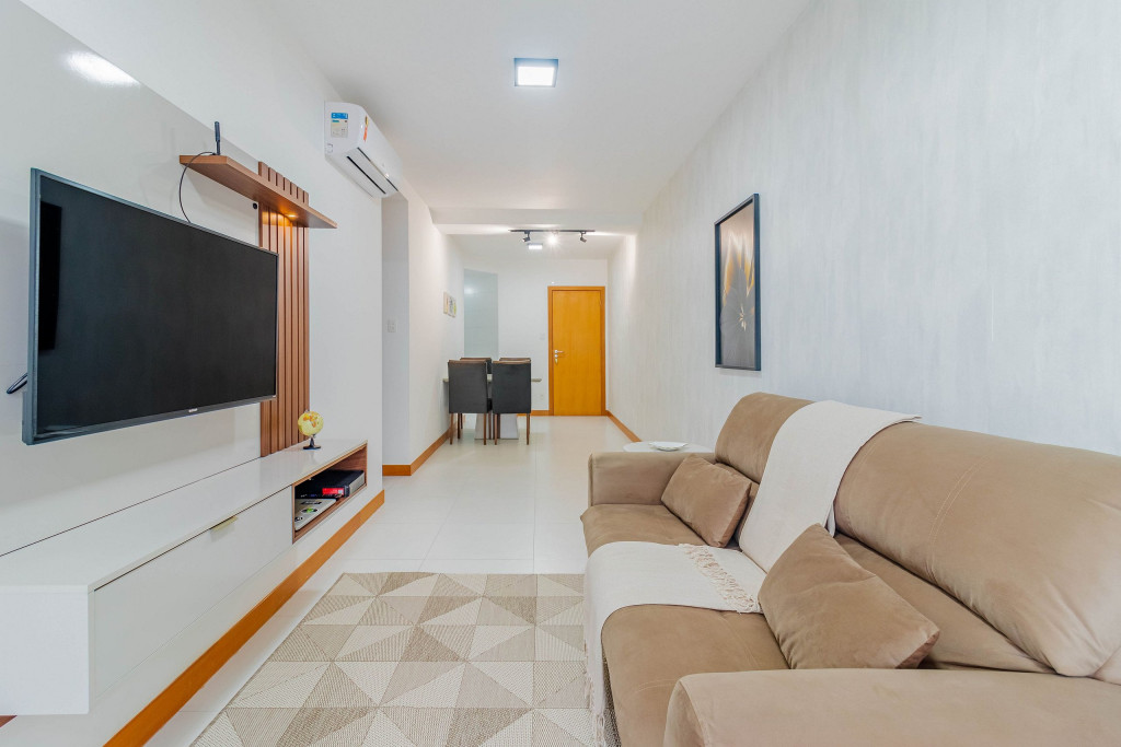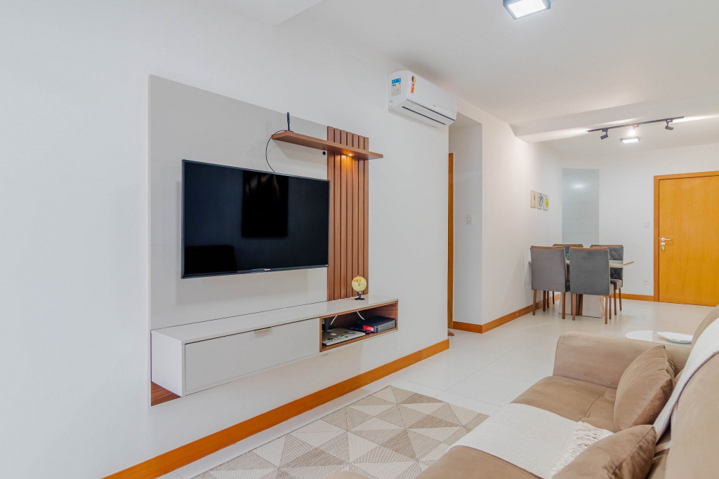 Localizado no Residencial Mário Quintana no 2º andar, a 550m da Praia do Porto da Barra, meu espaço é composto por quartos climatizados, sala de estar com Smart TV, Wi-fi, cozinha completa integrada e varanda.