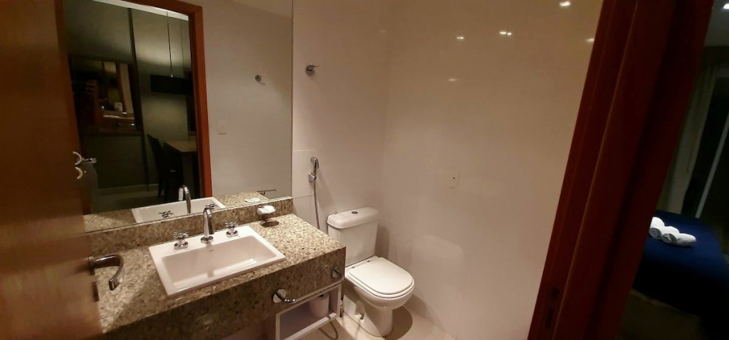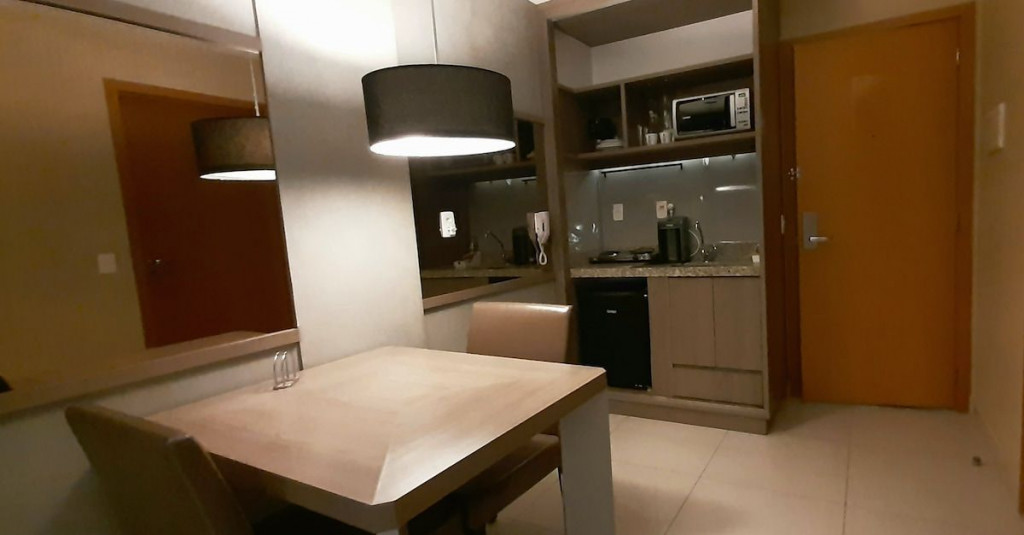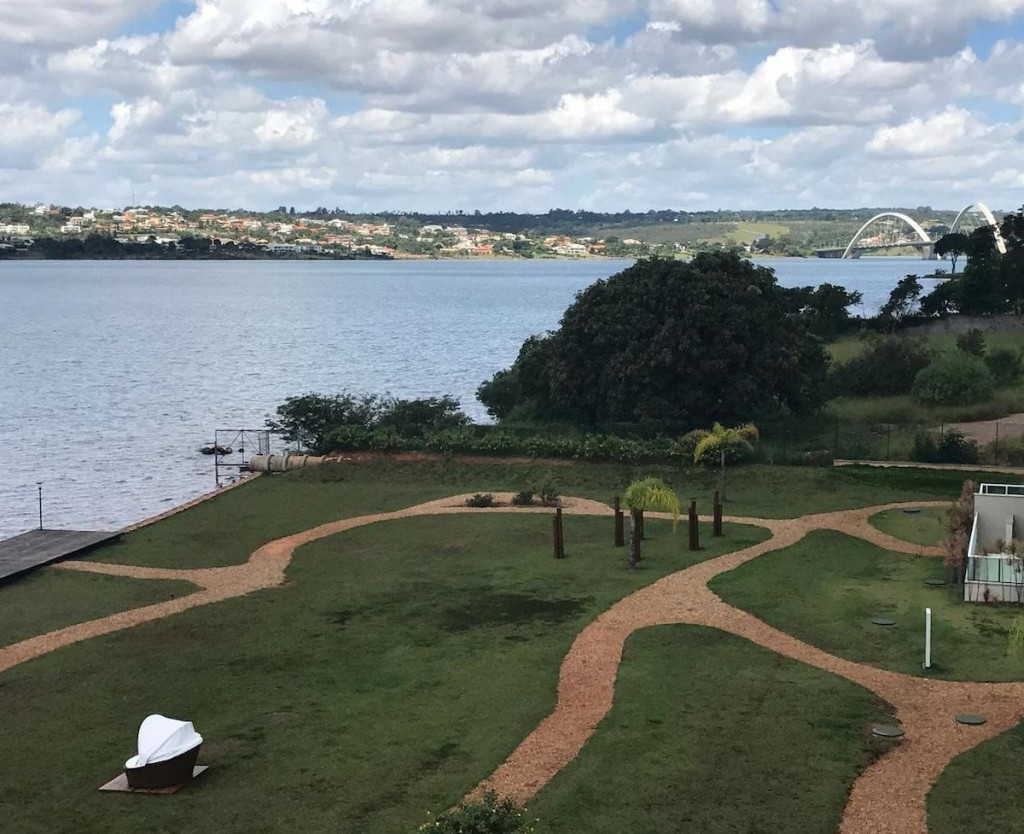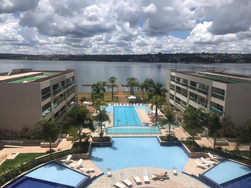 Flat aconchegante em condomínio muito seguro e bem localizado. Apartamento mobilado de um quarto com terraço virado para a piscina . Bela Vista. TV a cabo, internet WIFI de alta velocidade, ar condicionado, cozinha totalmente equipada, máquina de café. Restaurante, bar e loja de conveniência na propriedade. Estacionamento coberto e acesso direto ao Lago do Paranoá.