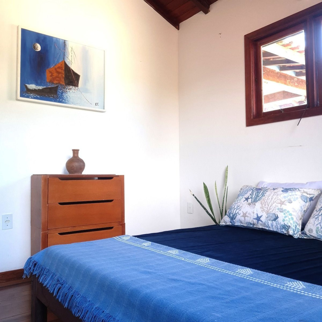 Conta com salas de estar, de leitura no mezanino, sala de jantar, cozinha.Acomoda 08 pessoas confortavelmente.Suíte 1 Térreo - 1 cama de casal e ante sala com bicama.