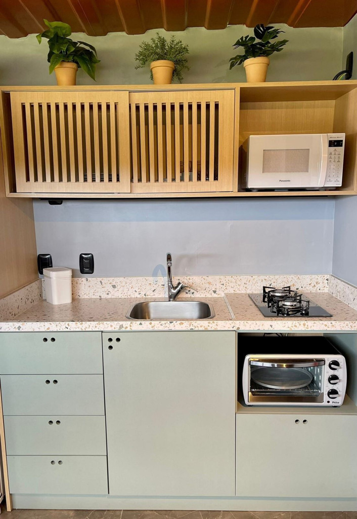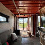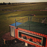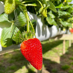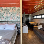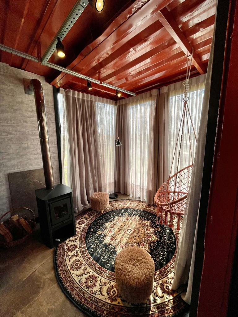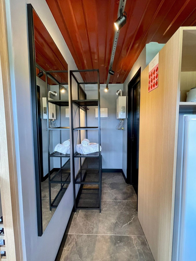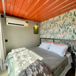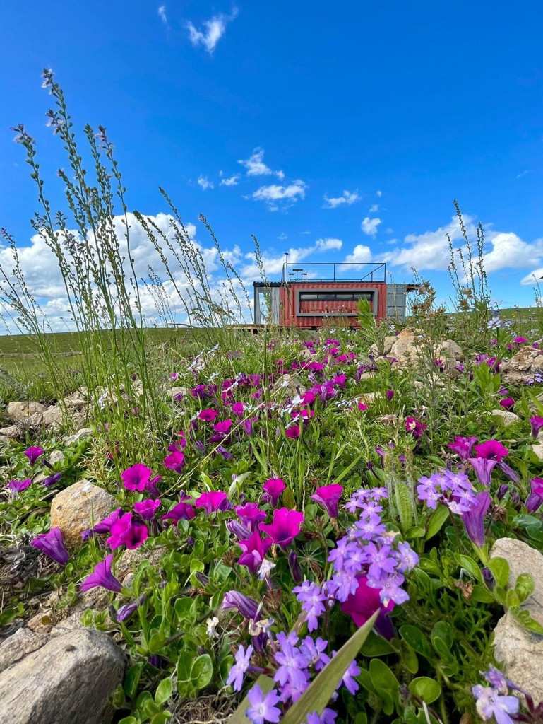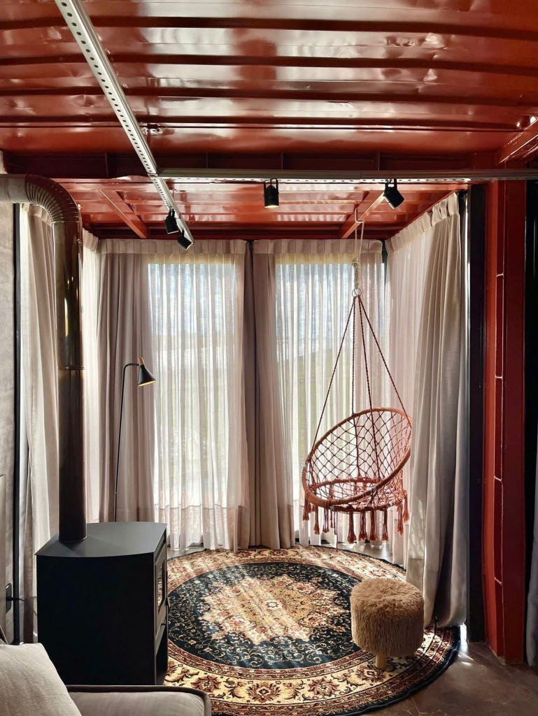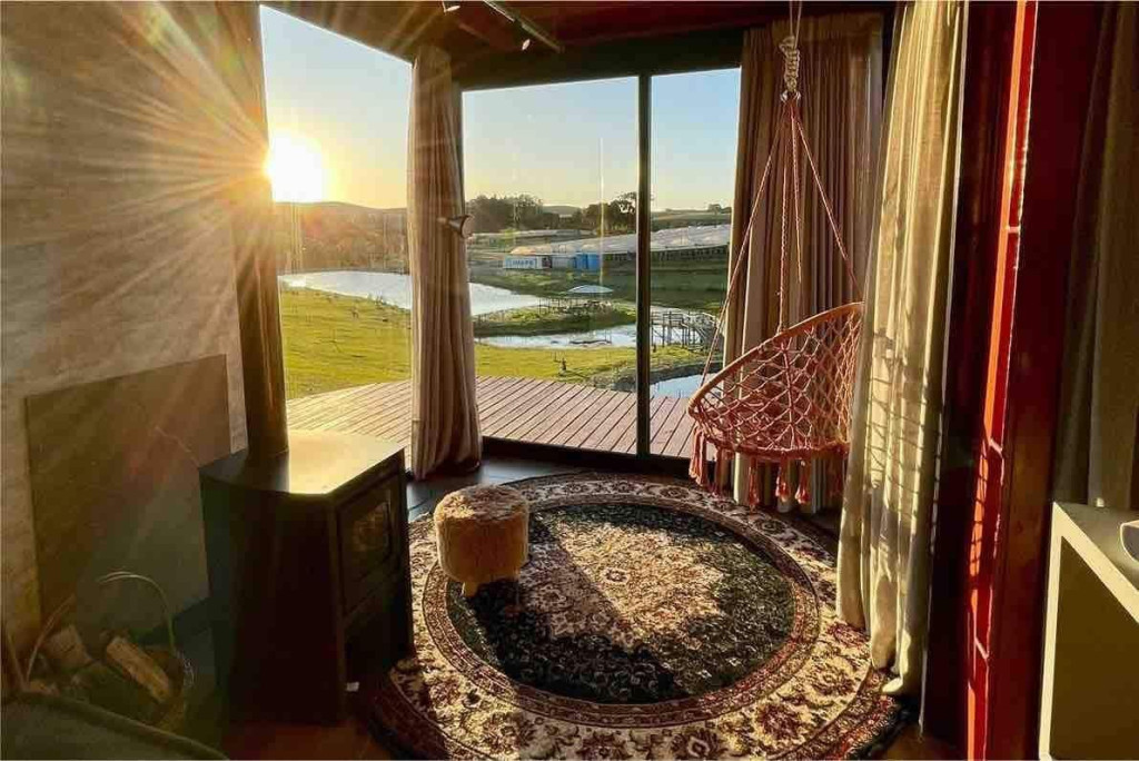 Uma cabana contêiner cuidadosamente criada para lhe receber, dentro de uma impecável fazenda de morangos.