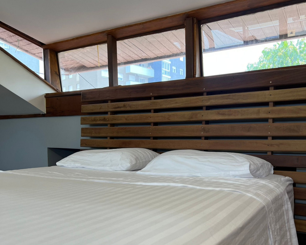 A configuração pitoresca permite uma experiência especial, lembrando a cabine de uma embarcação, onde se desfruta de total privacidade, ao mesmo tempo que se tem uma vista privilegiada do entorno, da luz natural, céu, clima.