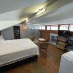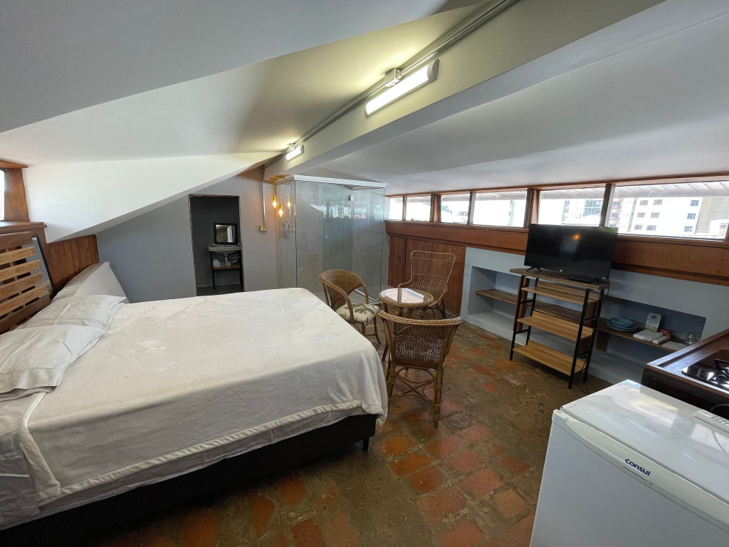 Um sótão restaurado em padrão europeu em uma edificação de 1962.