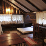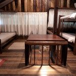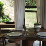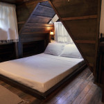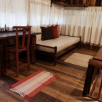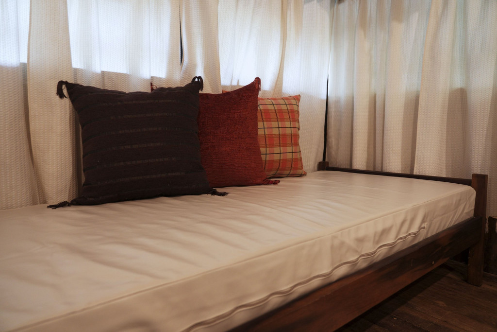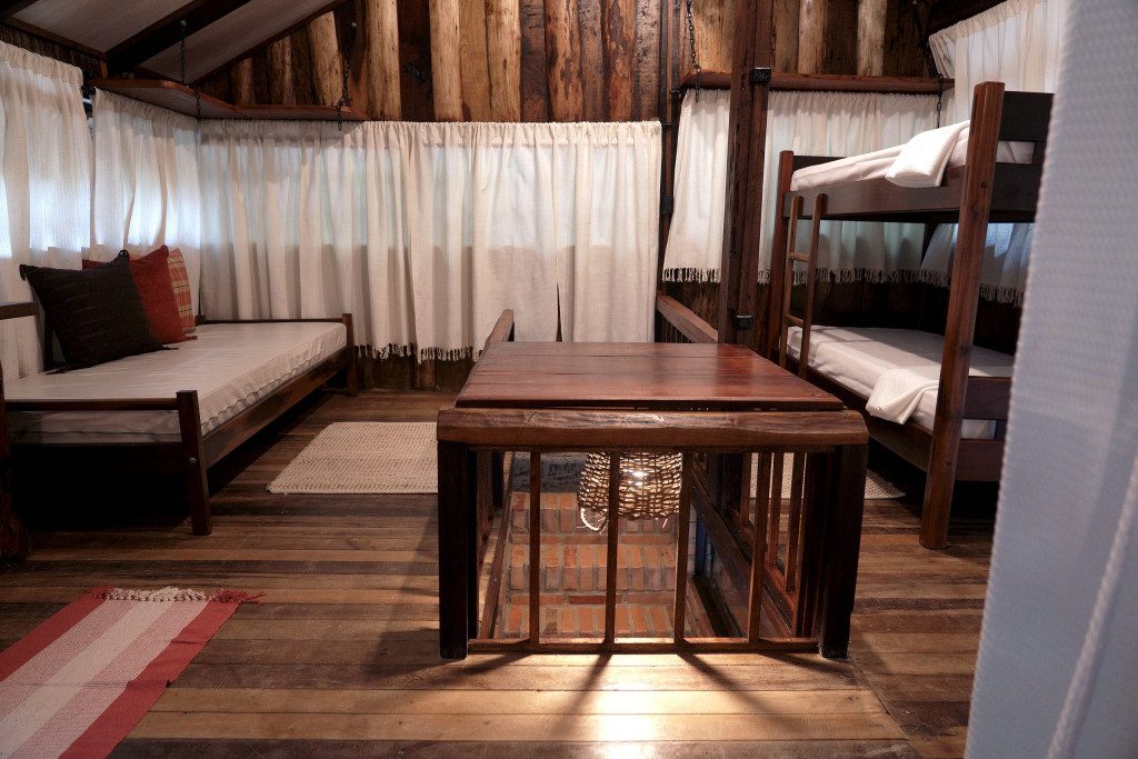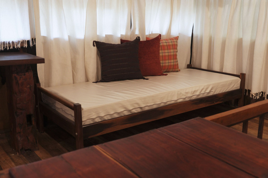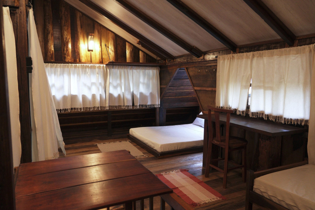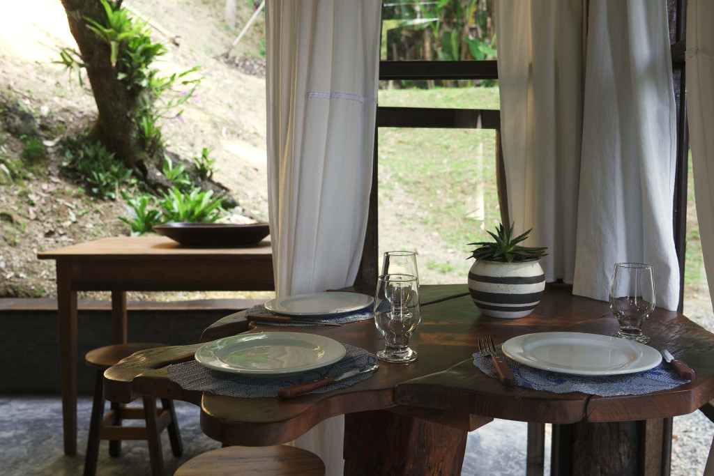 A CABANA, construída com material de demolição, em clássico estilo rústico, forma um aconchegante ambiente de sossego, descanso e confraternização. No térreo, encontram-se a cozinha, completa, o banheiro, em estilo vintage, constituído por peças de bronze, e o espaço externo de convivência para confraternizações em contato com o ambiente. No andar superior, encontram-se os dormitórios, com destaque para o espaço da cama de casal que contém uma claraboia com vista para o céu, o espaço de home-office e a varanda, com rede de descanso e vista para a nascente. Todos os espaços da CABANA, internos e externos, são também formados por móveis rústicos de demolição e a decoração segue o mesmo estilo, proporcionando, assim, uma completa atmosfera de paz e bem-estar.