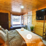 A cabana tem um ar rústico, entretanto é totalmente moderna e repleta de comodidades e elegância, promove bem-estar aos hóspedes e experiências inesquecíveis. Perfeito para quem procura descansar e desfrutar de um ambiente especial.A cabana é projetada para casais com o máximo de comodidade. Ambiente amplo e confortável é característica do espaço que dispõem de suíte com cama de casal em estilo estúdio, box, cozinha compacta, tudo de forma integrada e em conceito aberto.