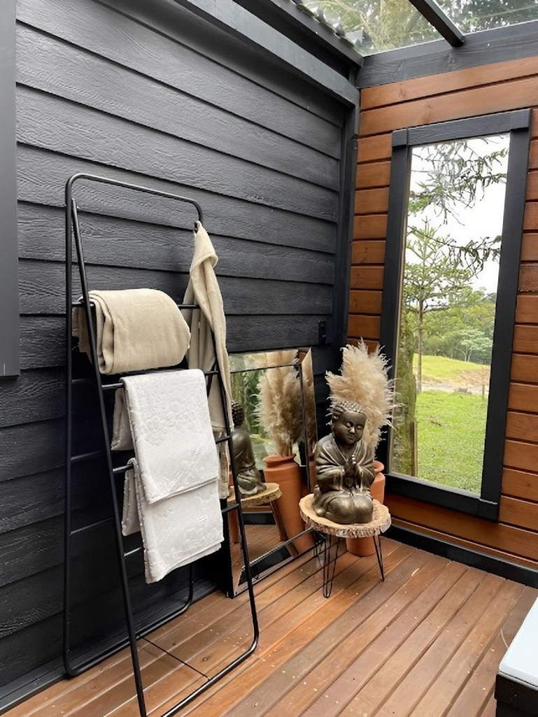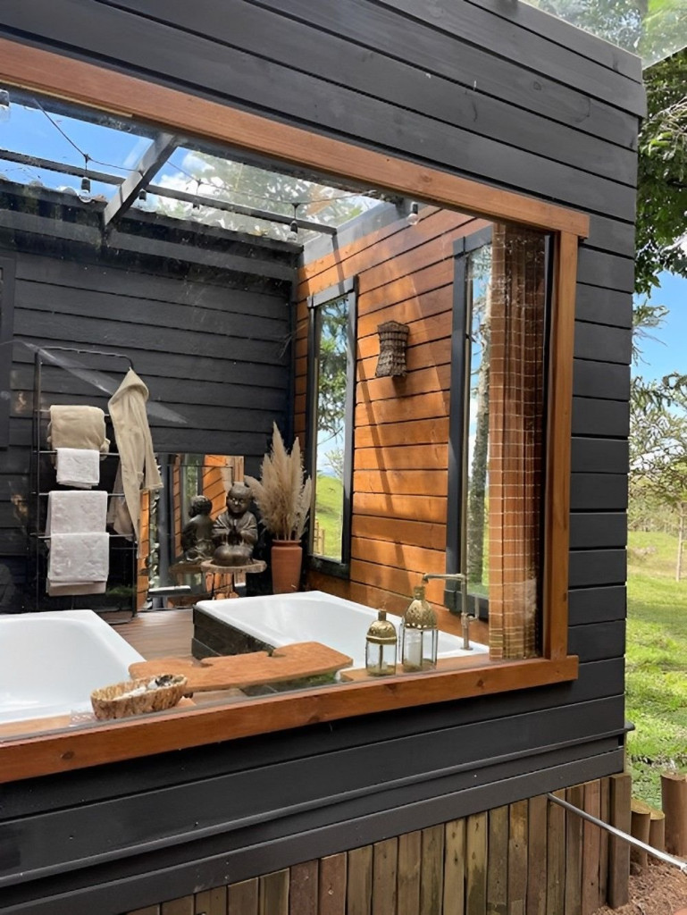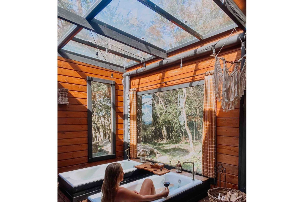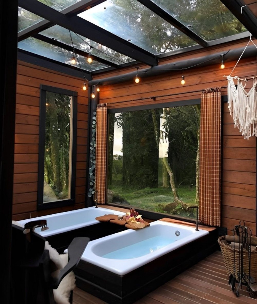 A Cabana da Mata mistura o estilo minimalista com o rústico e fica em meio a floresta.No deck interno tem duas banheiras de ferro fundido com aquecimento a lenha que são um charme.Na área externa tem espaço com fogueira. Esta cabana é exclusiva para casais.Fornecemos roupas de cama, banho e roupões.