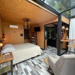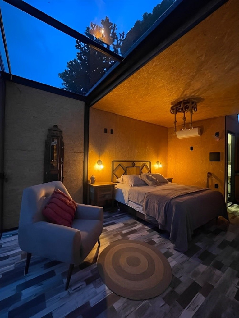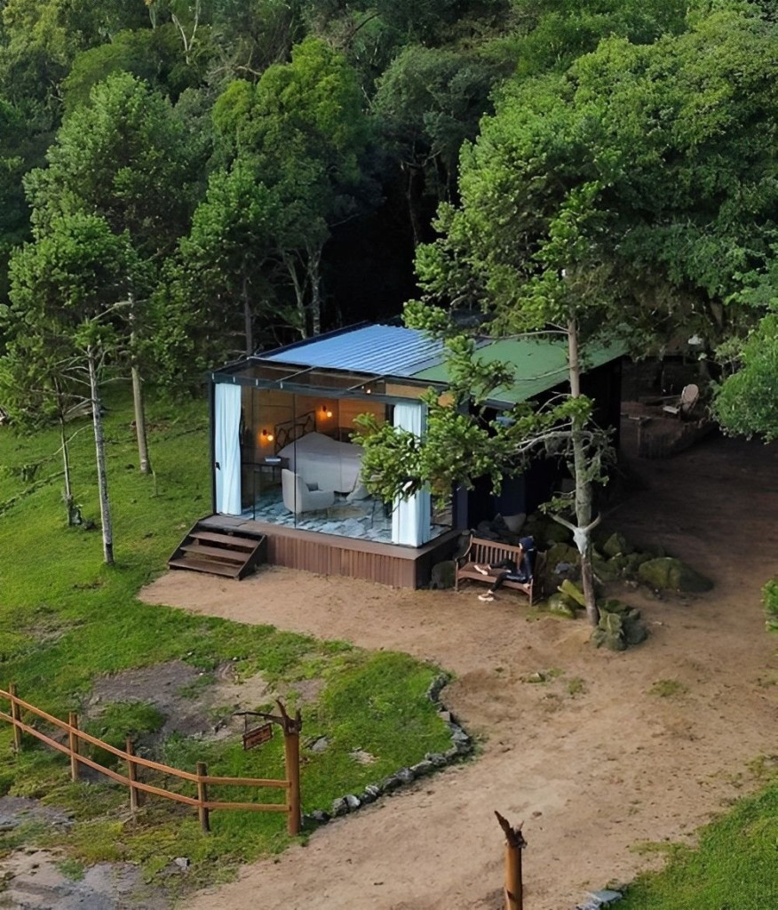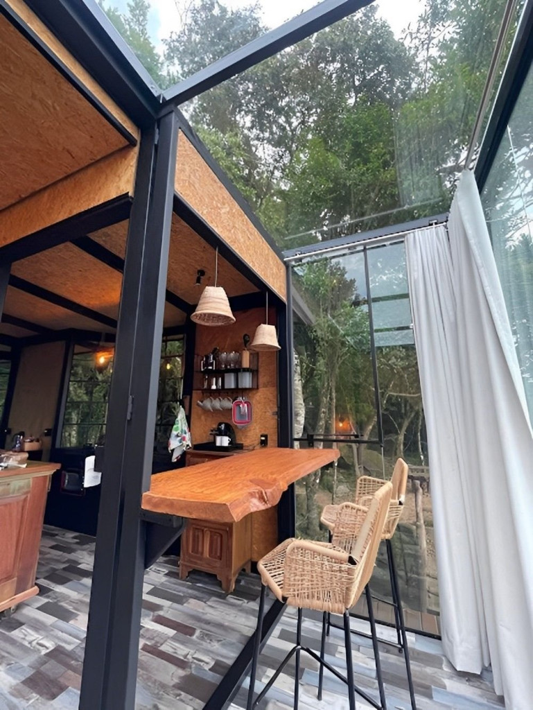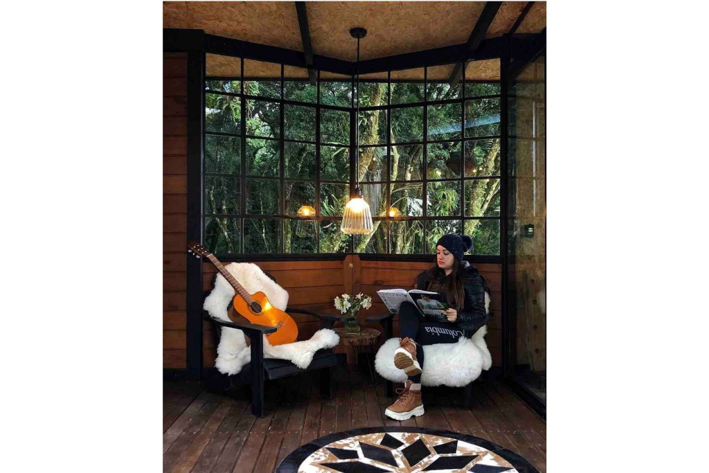 A Cabana da Mata mistura o estilo minimalista com o rústico e fica em meio a floresta.No deck interno tem duas banheiras de ferro fundido com aquecimento a lenha que são um charme.Na área externa tem espaço com fogueira. Esta cabana é exclusiva para casais.Fornecemos roupas de cama, banho e roupões.