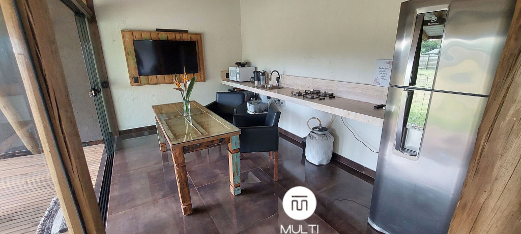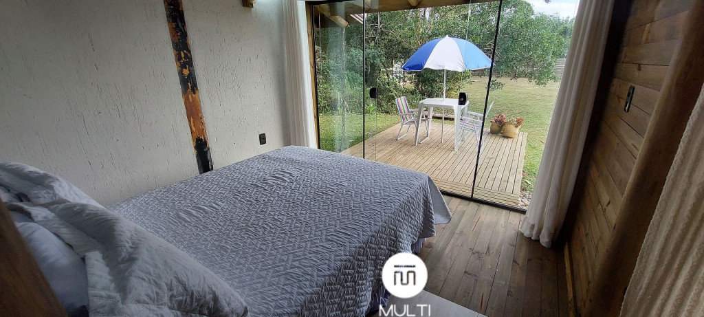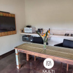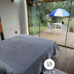 Nossa acomodação dispõe de roupas de cama, travesseiros, manta e toalhas de banho. A unidade possui duas TVs 32" LCD e 2 cozinhas completas com micro-ondas, liquidificador, sanduicheira, geladeira duplex, bancada de granito e mesa. O wi-fi via fibra ótica de 60mb. Temos uma área gourmet recém construída com churrasqueira, bancada, pia, geladeira, TV, tudo novinho e de extrema qualidade. Além disso temos a opção de utilização de churrasqueira portátil na área externa. Da varanda também se pode contemplar um lindo pôr-do-sol, arancuans, gralhas azuis e pássaros nativos. A varanda é perfeita para relaxar apreciando a natureza.