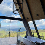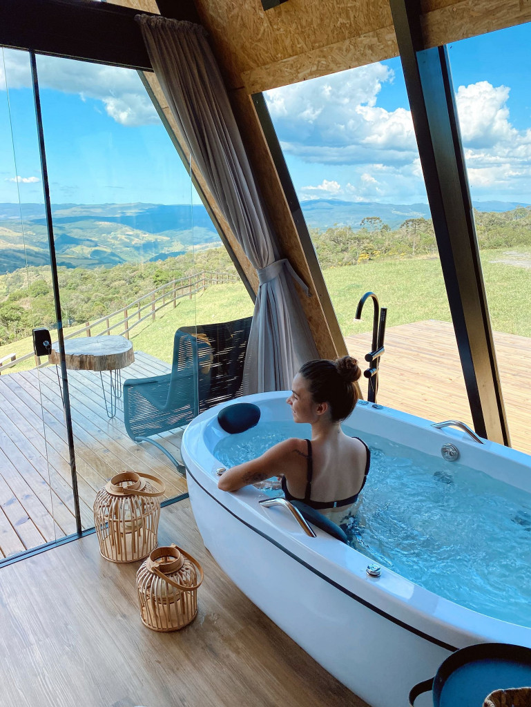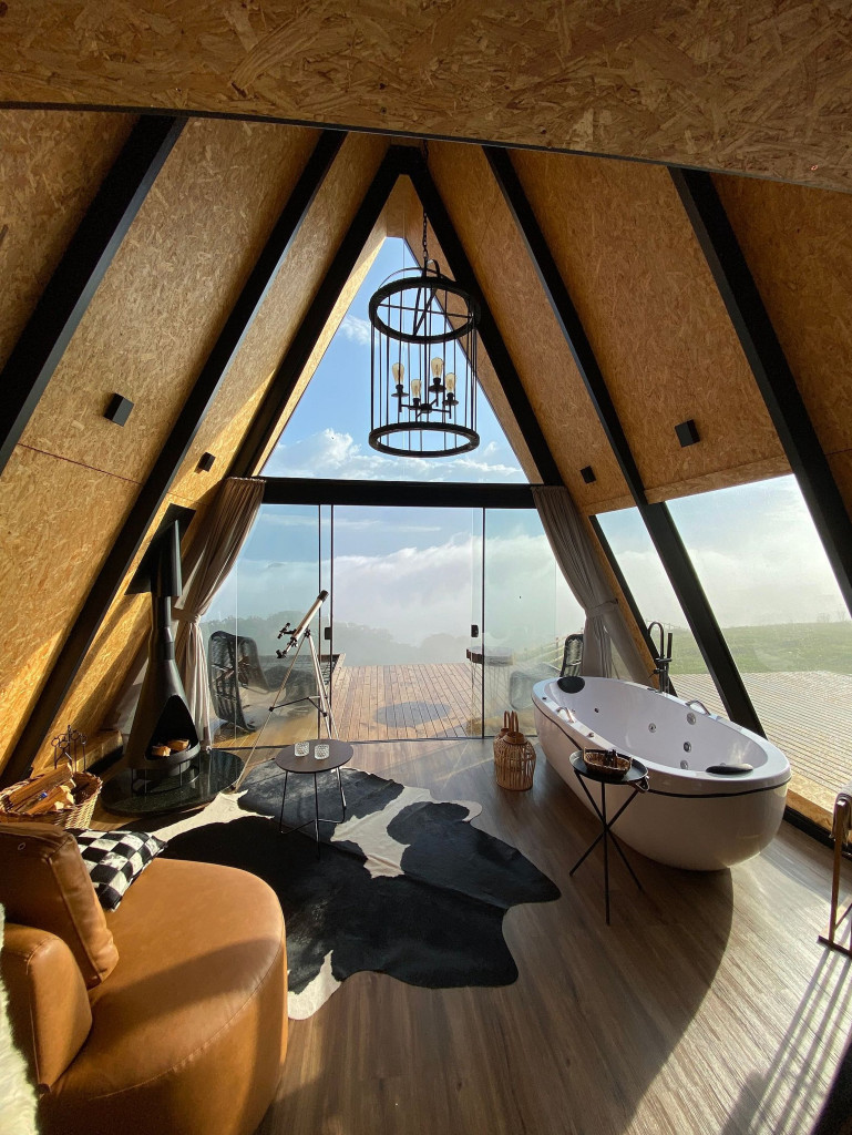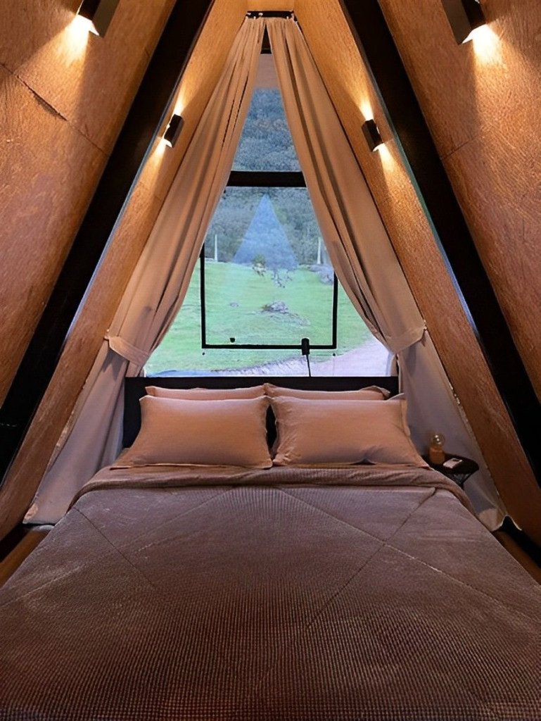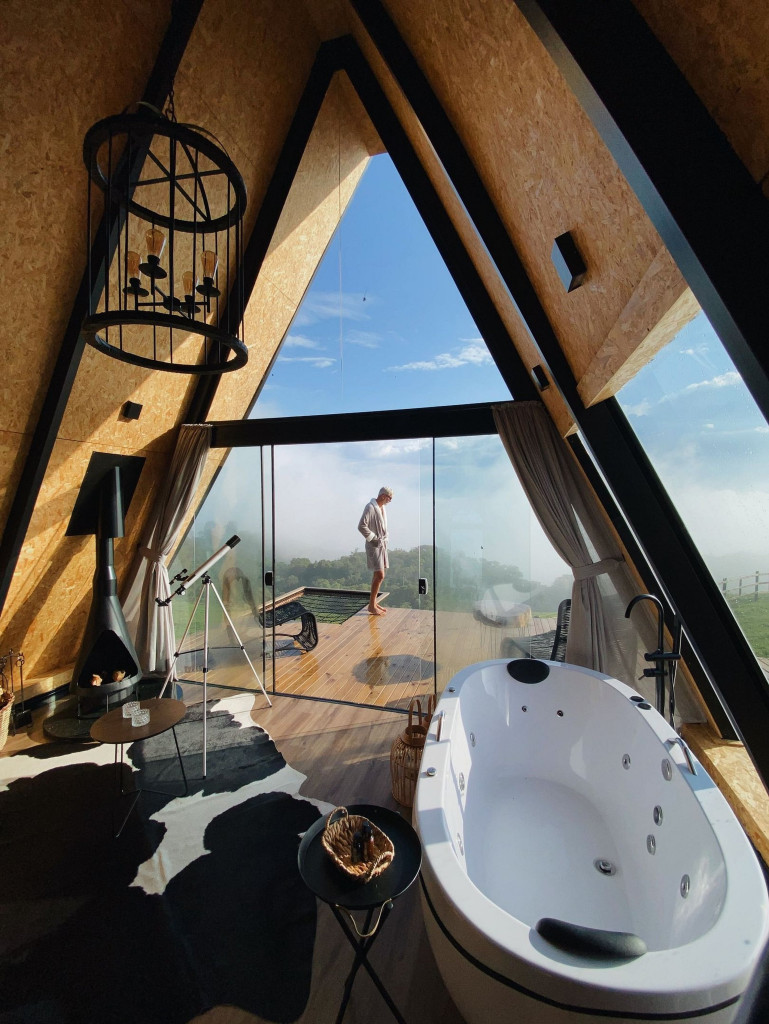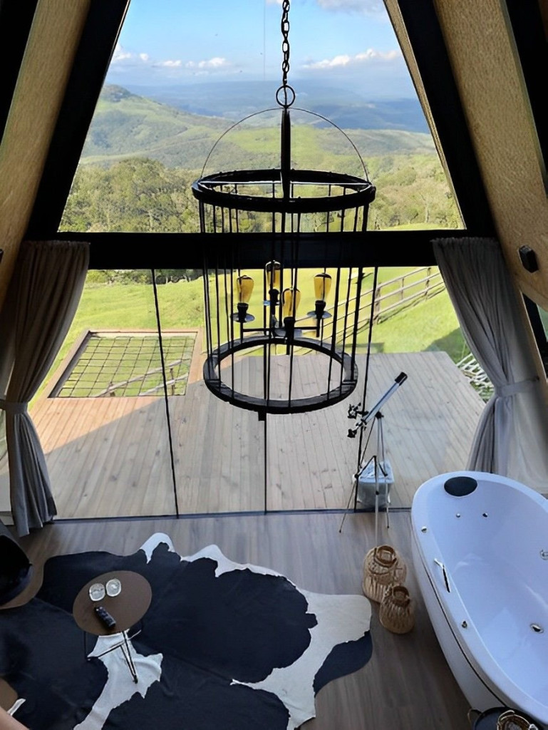 A Cabana Horizonte foi desenvolvida para casais e pensada em cada detalhe para oferecer momentos de conforto e aconchego a dois.Com todo o charme que uma cabana Aframe remete e uma banheira de hidromassagem com cromoterapia na sala com uma vista deslumbrante.