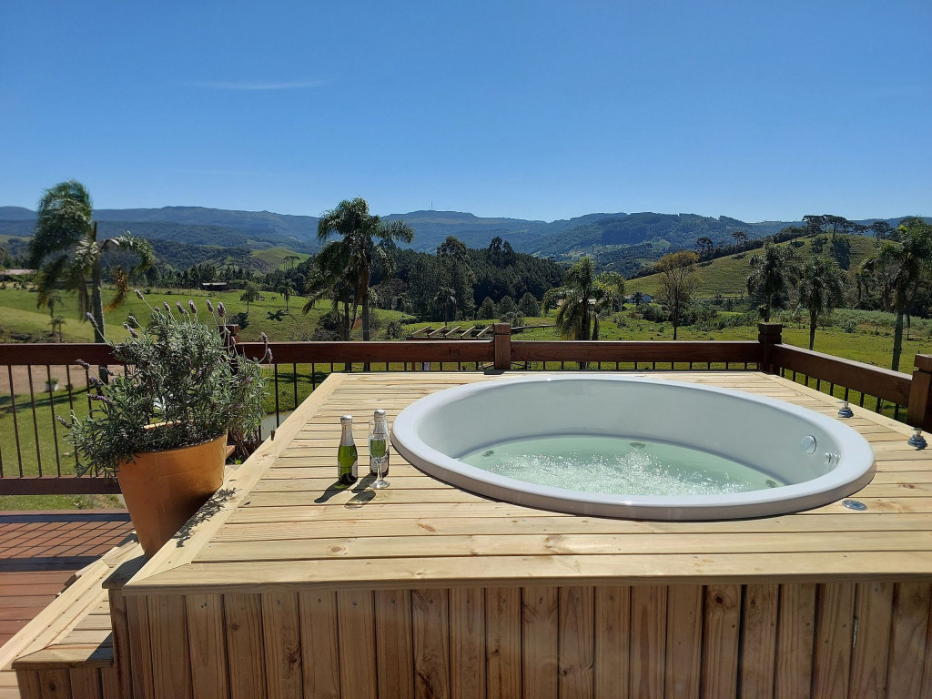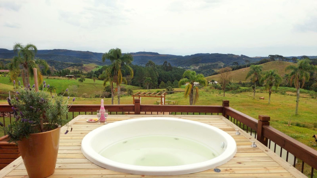 Ambiente interno de 80 metros quadrados, jacuzzi com hidromassagem, churrasqueira e estacionamento seguro. Cozinha completa com fogão, forno, geladeira, micro-ondas, torradeira, cafeteira, panela de fondue e itens básicos de cozinha, todos de primeira linha. Além disso, possui sala de estar e jantar, com uma excelente lareira interna à lenha. Ademais, temos internet WI-FI de qualidade para Home-Office, TV de 43’’, Canais a Cabo SKY, rouparia de cama e banho, terreno imenso e cheio de verde e um Deck espaçoso (18m²) com uma incrível vista para o Morro da Boa Vista, bem como do Pôr-do-Sol. Tudo isso para um melhor conforto dos nossos hóspedes, para que se sintam em casa, em um perfeito refúgio para descansar e desvendar o que há de melhor na Serra Catarinense.