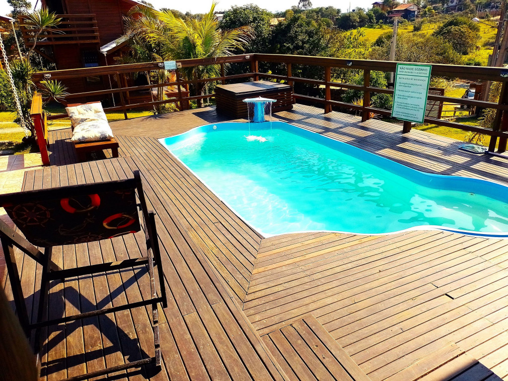 A propriedade é totalmente moderna, com conceito de lazer, repleta de comodidades e elegância, promove bem-estar aos hóspedes e experiências inesquecíveis. Perfeito para quem procura descansar e desfrutar de um ambiente especial.A propriedade é fechada e oferece amplo pátio, jardim e estacionamento (10 vagas), áreas de lazer: piscina de adulto com cascata, área gourmet com churrasqueira, cervejeira e área de jogos com sinuca, dardo, dominó, uno e baralho.Temos três opções de cabanas (44m²) projetadas para até 5 pessoas com o máximo de comodidade. Ambientes amplos e confortáveis são características do espaço que dispõem de um dormitório, sala de estar/jantar, cozinha, sacada e banheiro social.Dormitório: Cama de Casal, Sofá-Cama Casal, Armário e Ar-Condicionado;Sala de Estar: Sofá-Cama Solteiro e TV HD 30’’;Varanda: Rede de descanso;A cozinha possui: fogão, geladeira, micro-ondas, louças e talheres, utensílios de cozinha e eletrodomésticos de qualidade. Além disso, temos internet Wi-Fi de 200 mega, secador de cabelo e ferro de passar. Tudo isso para um melhor conforto dos nossos hóspedes, para que se sintam em casa, em um perfeito refúgio para descansar e desvendar o que há de melhor no Litoral Catarinense.Orientações: