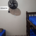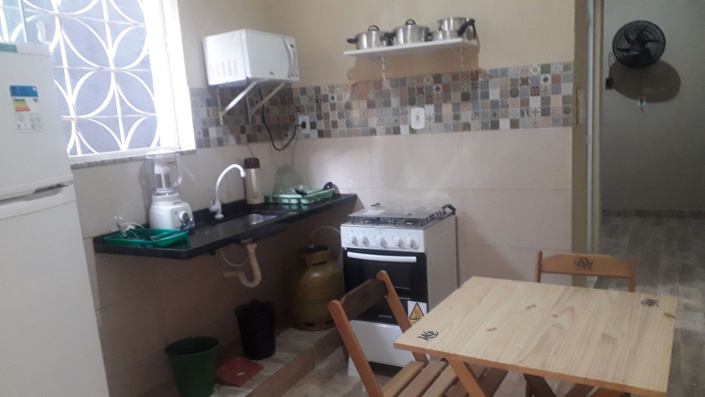 Imóvel com quarto, cozinha e banheiro próximo as praias de Cabo Frio. Fica no térreo e possui janela com vista para o corredor. Possui uma cama casal, um beliche, geladeira, fogão, forno micro-ondas, sanduicheira, liquidificador, utensílios de cozinha, ventilador, TV e Wi-Fi. Comporta até 4 pessoas. Endereço: R. Frei Henrique Coimbra, 158 (Referência: em frente a Delegacia de Polícia Civil). Região Central com vasto comércio. Não tem estacionamento. É exigida identificação pessoal dos hóspedes.