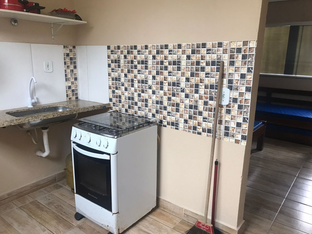 Imóvel com quarto, cozinha e banheiro (privativo). O imóvel fica no primeiro andar, sendo necessário subir escada. Possui janela com vista para o corredor. Há uma cama casal, um bicama, geladeira, fogão, forno micro-ondas, sanduicheira, liquidificador, utensílios de cozinha, ventilador, TV e Wi-Fi. Comporta até 4 pessoas. Endereço: R. Frei Henrique Coimbra, 158 (Ponto de Referência: Delegacia de Polícia Civil). Região com comércio. Não tem estacionamento. É exigida identificação pessoal.