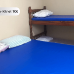 Imóvel com quarto, cozinha e banheiro (privativo). O imóvel fica no segundo andar, sendo necessário subir escadas. Possui janela com vista para o corredor. Há uma cama casal, um beliche, geladeira, fogão, forno micro-ondas, sanduicheira, liquidificador, utensílios de cozinha, ventilador, TV e Wi-Fi. Comporta até 4 pessoas. Endereço: R. Frei Henrique Coimbra, 158 (Ponto de Referência: Delegacia de Polícia Civil). Região com comércio. É exigida identificação pessoal dos hóspedes.