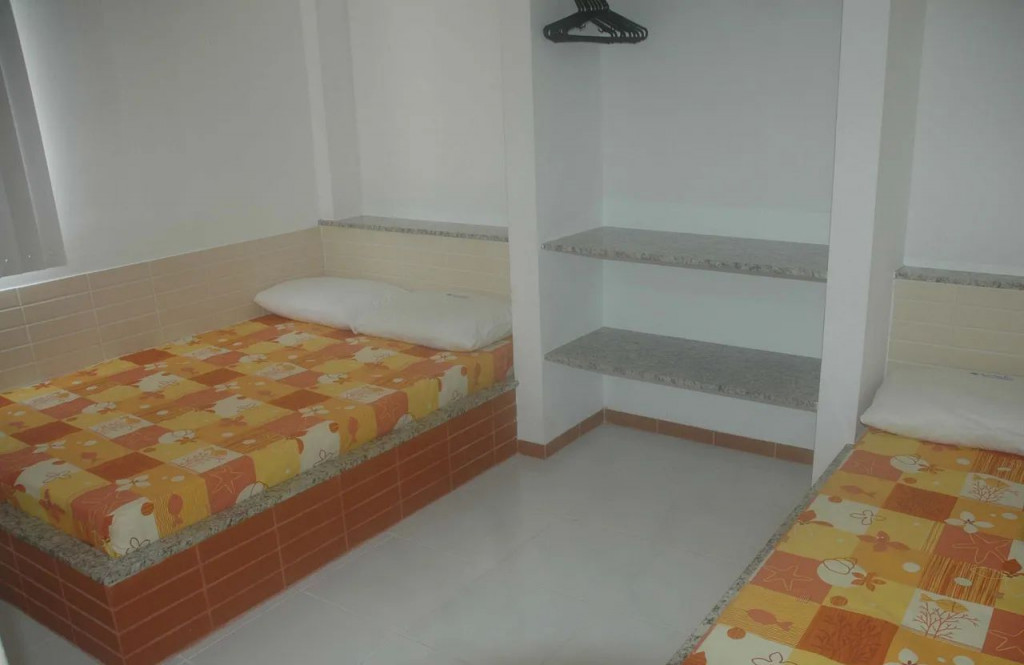 O apto tem dois quartos, sala, cozinha e banheiro, comporta até 8 pessoas (adultos e crianças). Em cada quarto há uma cama de casal e uma de solteiro, armário, além de ventilador. Na sala, há uma mesa, ventilador e dois sofá-cama de solteiro. A Cozinha é equipada com geladeira, fogão, utensílios de cozinha e louças. Não há talheres no imóvel. Não disponibilizamos roupa de cama, banho e nem produtos de higiene pessoal. Não há Televisão. Há Wi-Fi disponível. O estacionamento cobrado a parte.