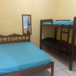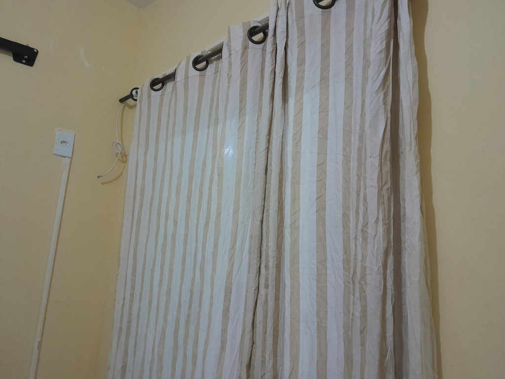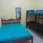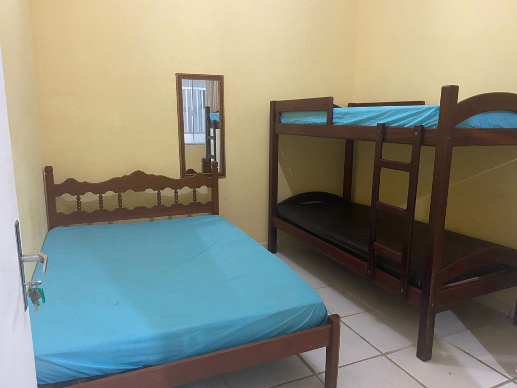 Quarto privativo com banheiro fora do quarto. Fica a 650 metros da Praia do Forte. Cama de casal e beliche. Capacidade para 4 pessoas. Há ventilador, televisão e frigobar. Cozinha compartilhada com fogão, forno micro-ondas e utensílios. Fica no terceiro andar, tendo que subir escadas. Endereço da hospedagem é: Rua Gustavo Beranger, 102 - Vila Nova – Cabo Frio – RJ. O ambiente é familiar. Não tem estacionamento. Há Wi-Fi. É exigida identificação pessoal e endereço do responsável pela reserva.