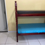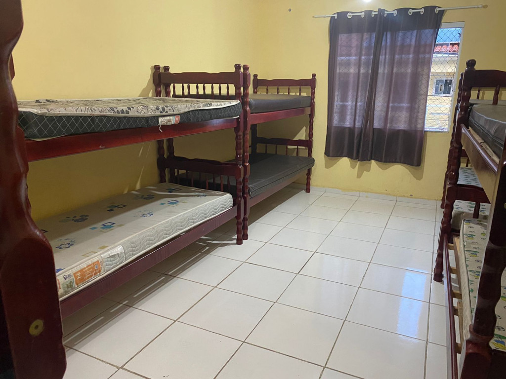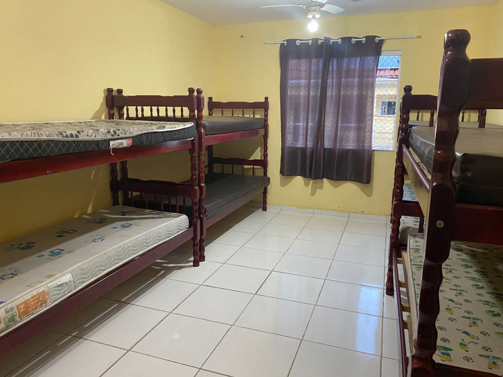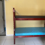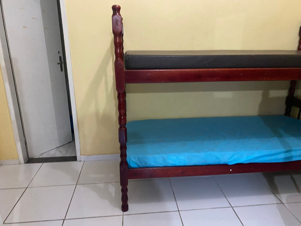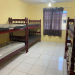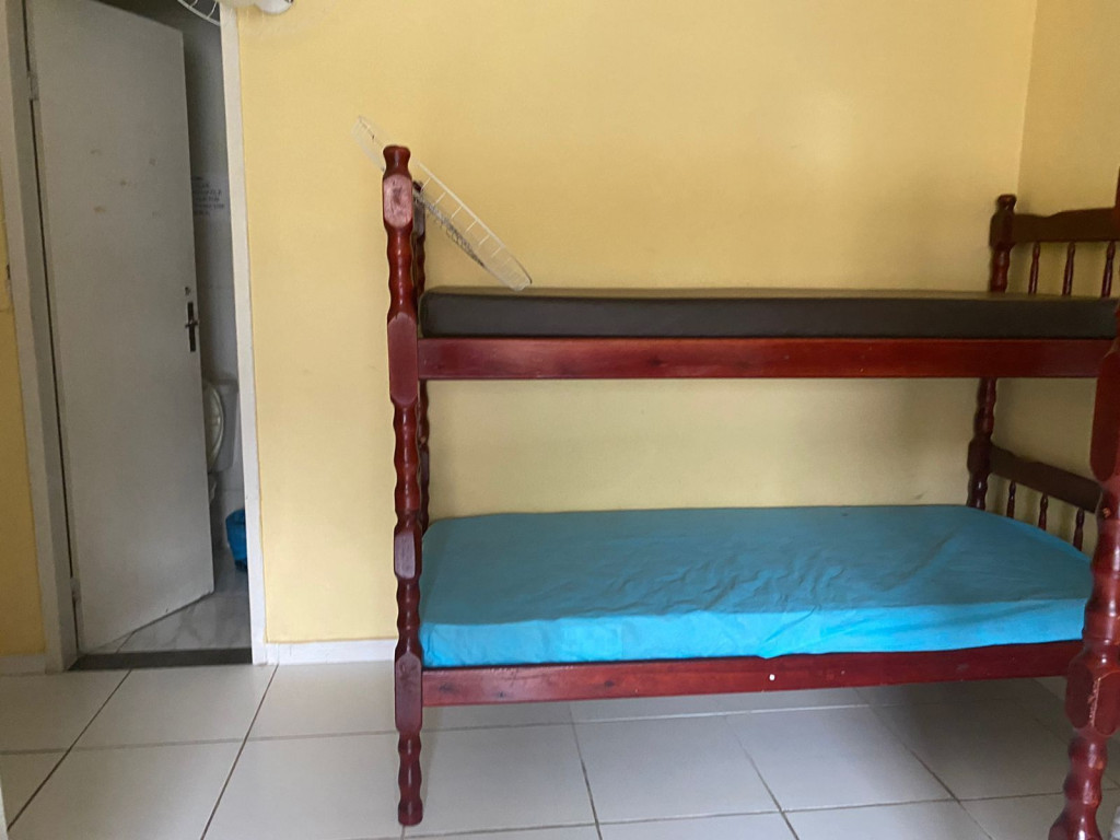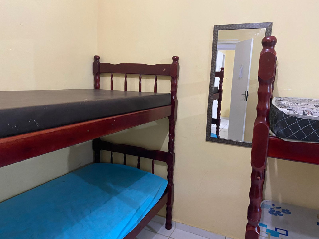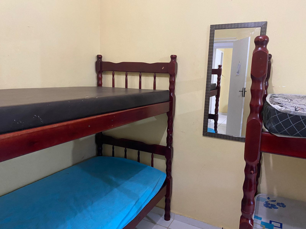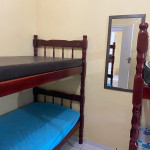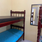 Suíte com quarto e banheiro a 650 metros da Praia do Forte. Há 5 beliches, com capacidade para 10 pessoas. Suíte privativa com ventilador, TV e frigobar. Cozinha compartilhada com fogão, forno micro-ondas e utensílios. Fica no segundo andar, sendo necessário subir escadas. O endereço da hospedagem é: Rua Gustavo Beranger, 102 - Vila Nova – Cabo Frio – RJ. A suíte é privativa (ambiente familar). Tem Wi-Fi gratuito. É exigida identificação pessoal e endereço do responsável pela reserva.