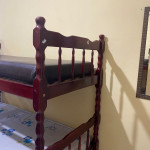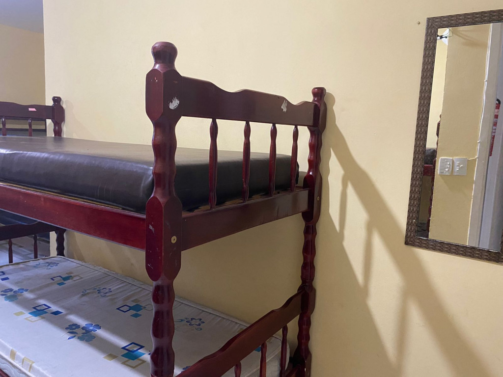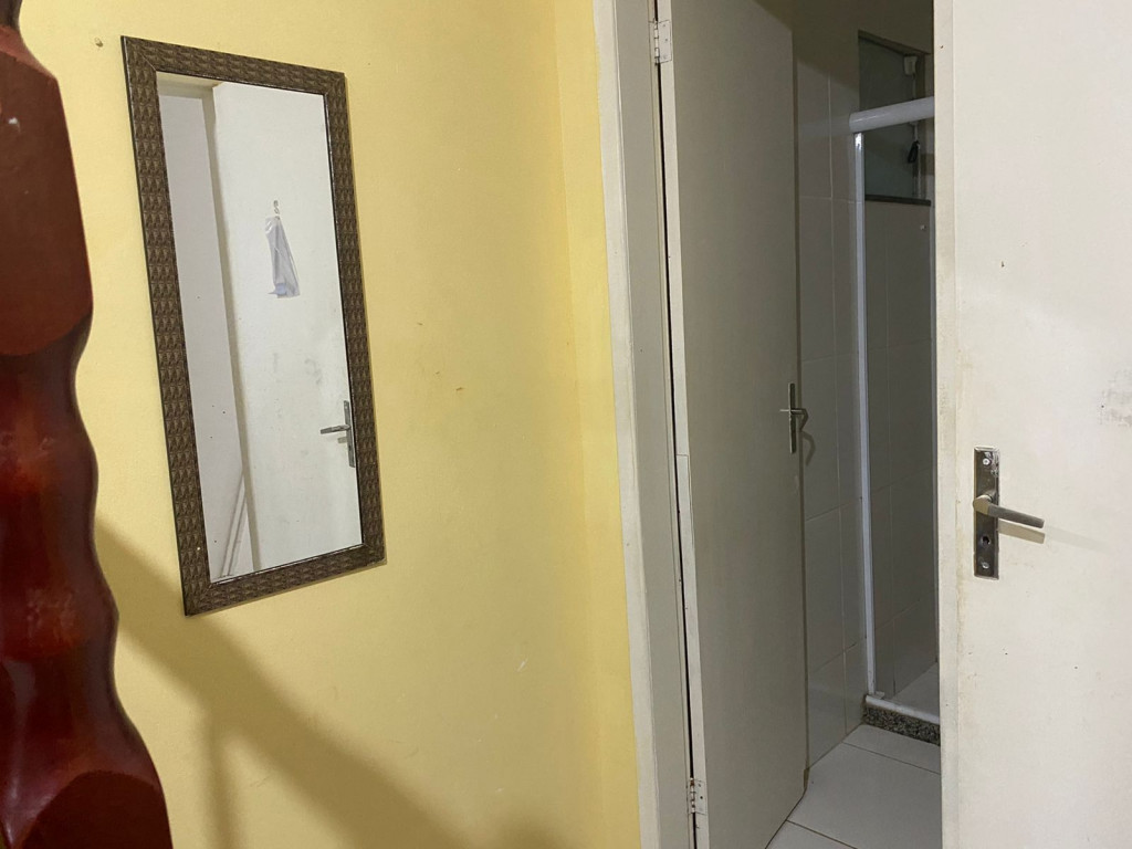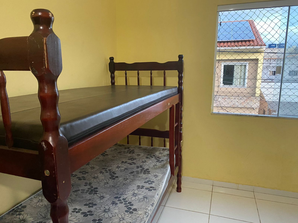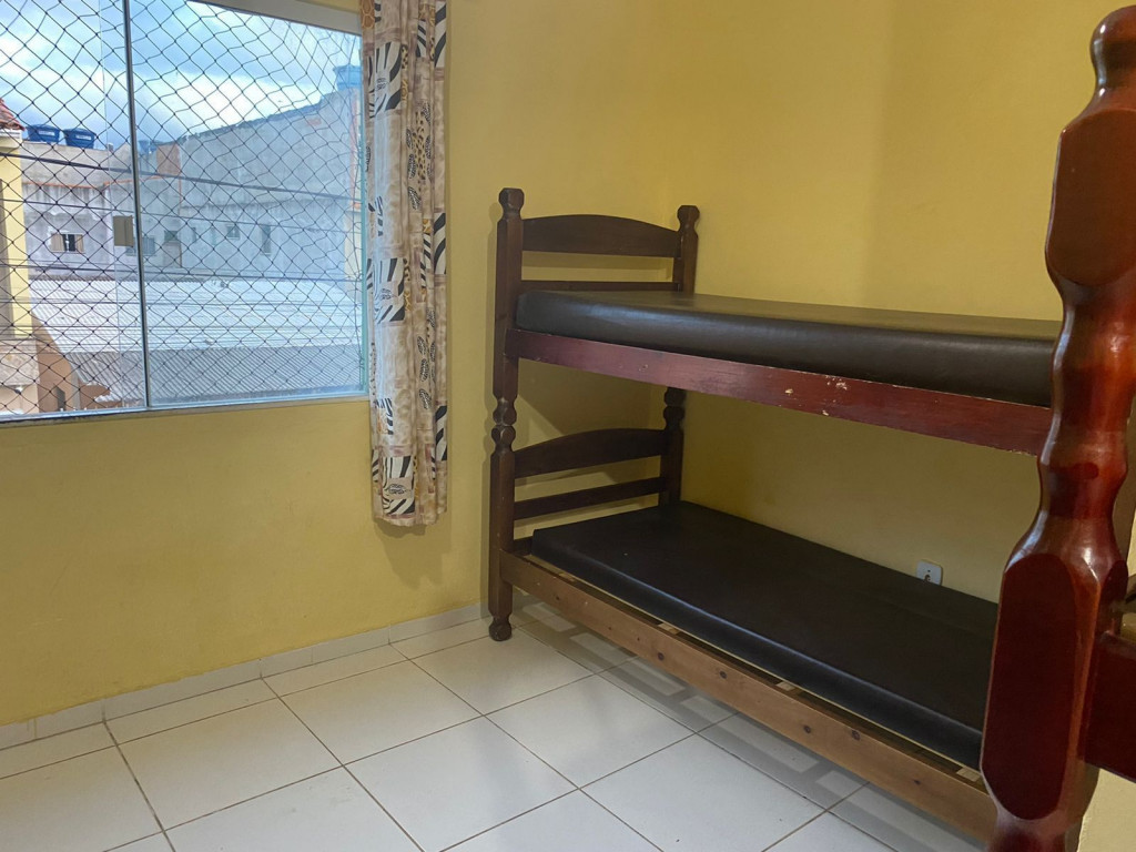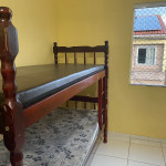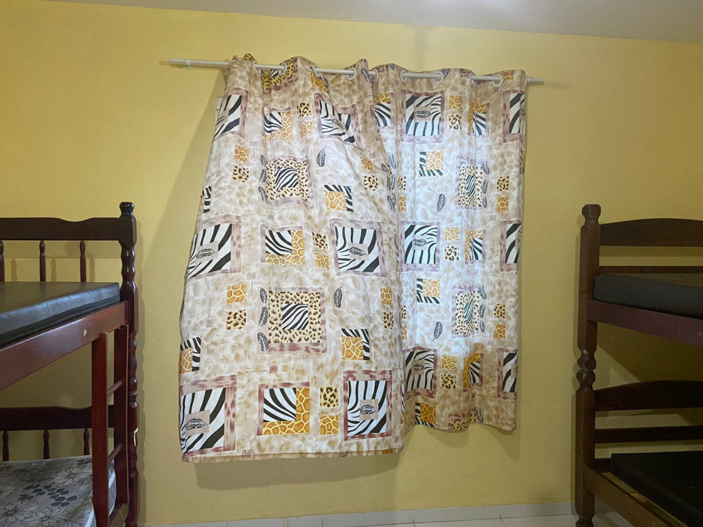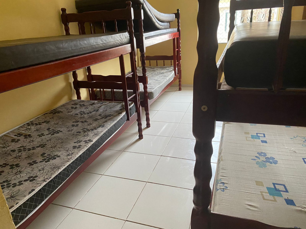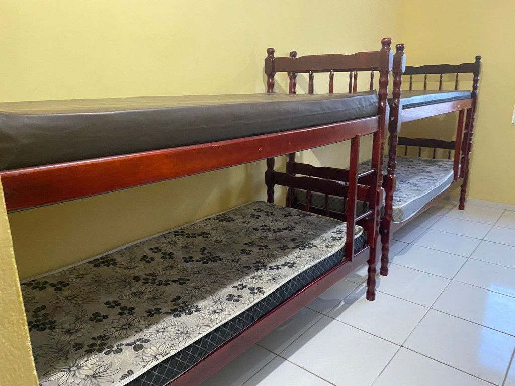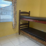 Suíte privativa com quarto e banheiro a 650 metros da Praia do Forte. Há 4 beliches, com capacidade para até 8 pessoas. Suíte privativa com ventilador, TV e frigobar. Cozinha compartilhada com fogão, forno micro-ondas e utensílios. Fica no segundo andar, sendo necessário subir escadas. O endereço da hospedagem é: Rua Gustavo Beranger, 102 - Vila Nova – Cabo Frio – RJ. Região Central, próximo ao comércio. Tem Wi-Fi gratuito. É exigida identificação pessoal e endereço do responsável pela reserva.