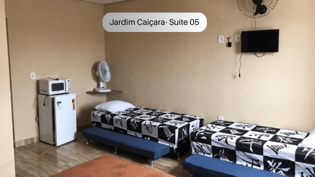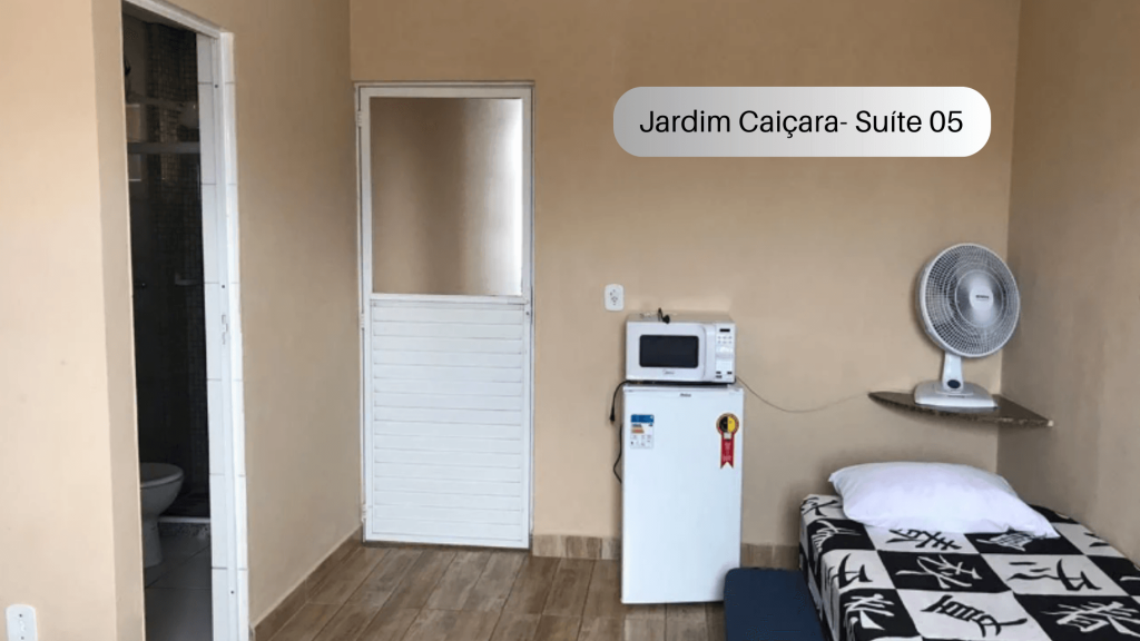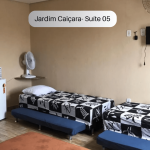 Suíte (quarto e banheiro privativa. O imóvel possui uma cama casal duas camas de solteiro e duas camas auxiliares de solteiro, frigobar, forno micro-ondas, ventilador e TV. Comporta 6 pessoas. O imóvel fica no terceiro andar, sendo necessário subir escadas. Possui janela com vista para a rua. O endereço da hospedagem é: Rua Frei Henrique Coimbra, 158, Jardim Caiçara - Cabo Frio - RJ. (Ponto de Referência: em frente à Delegacia de Polícia Civil). Região Central, próximo a um vasto comércio. Wi-Fi