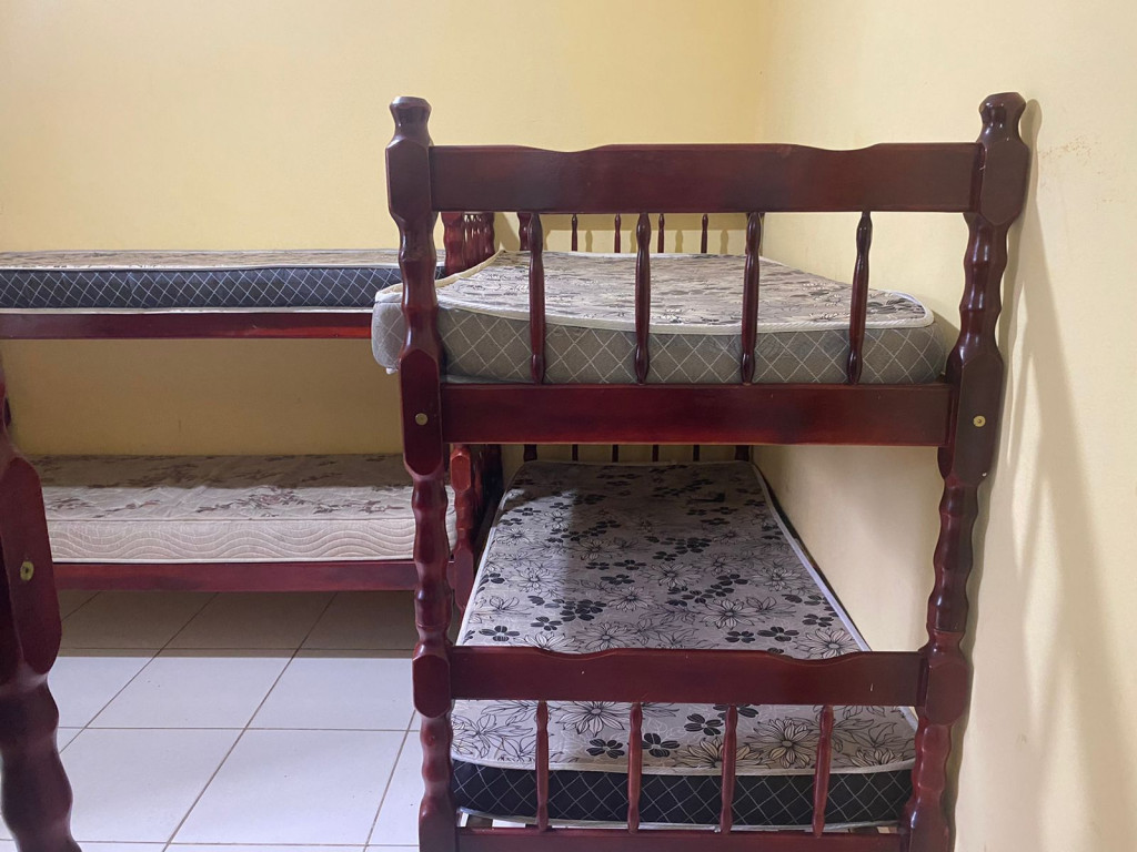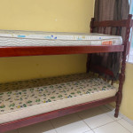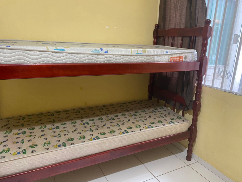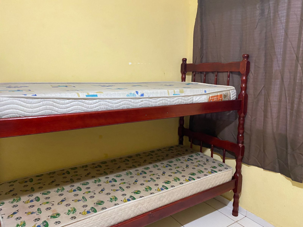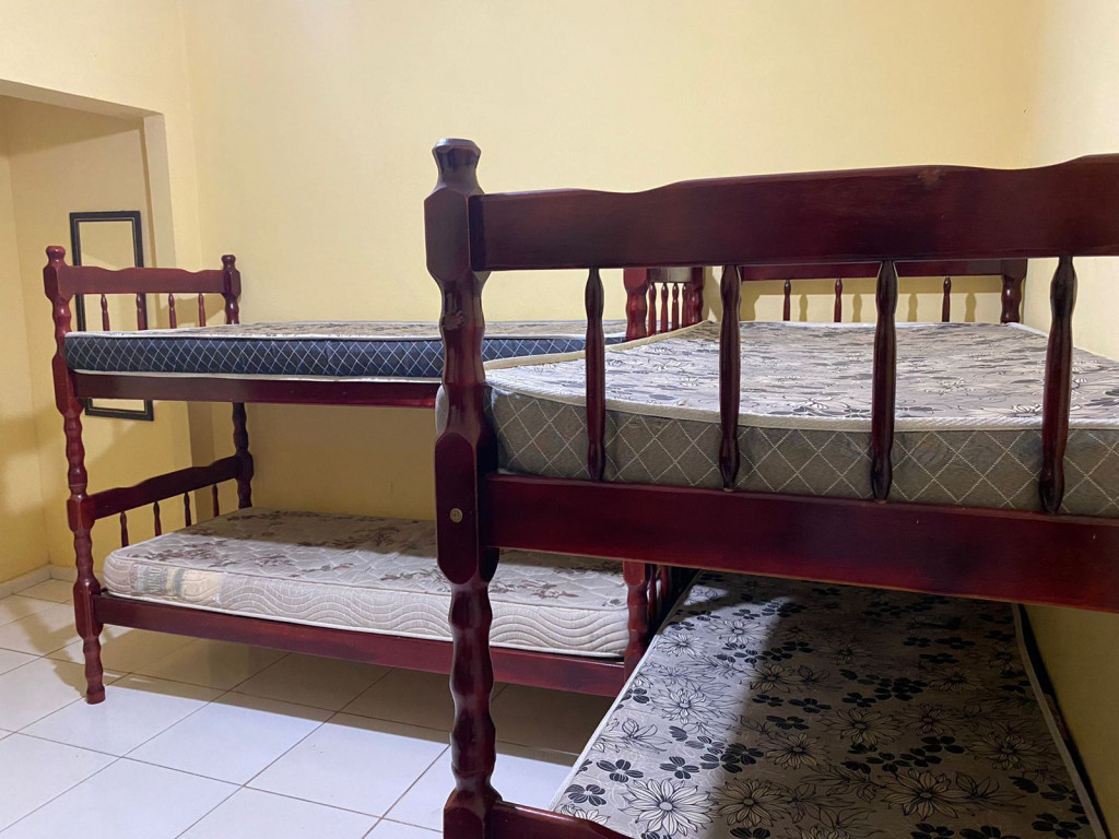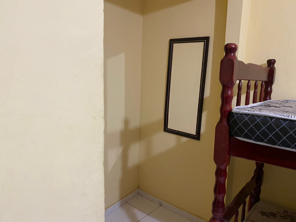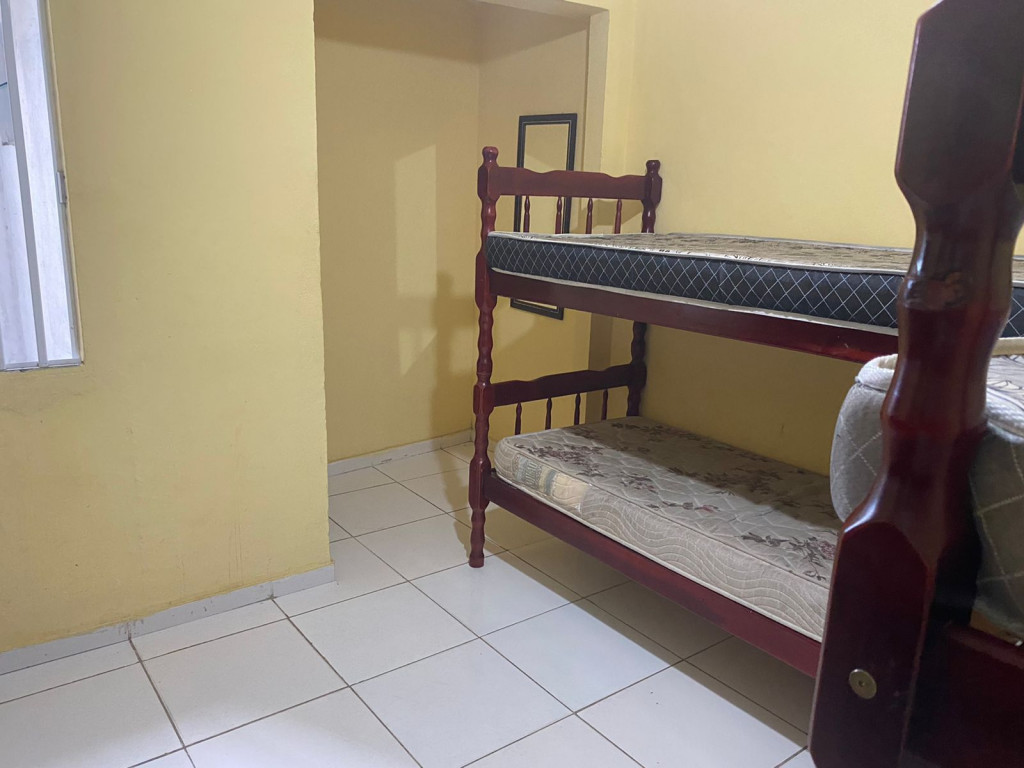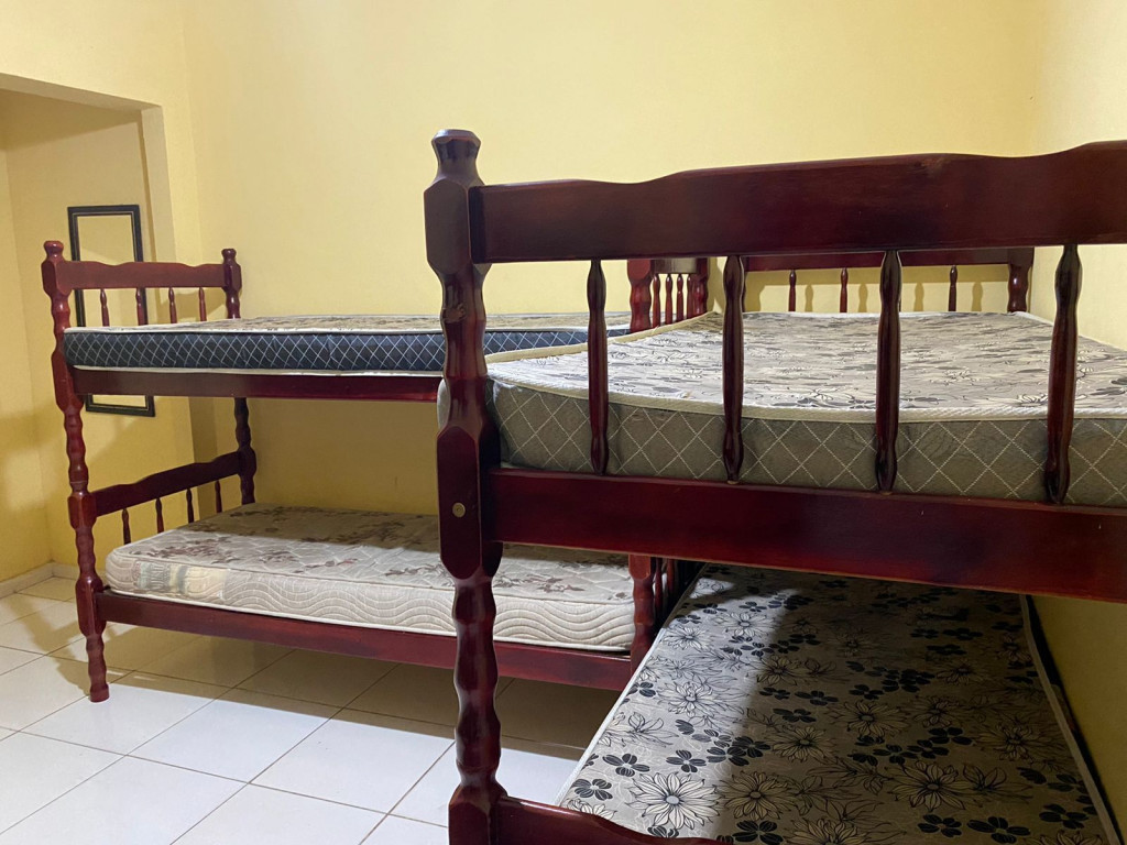 Suíte privativa com quarto e banheiro a 650 metros da Praia do Forte. Há 4 beliches, com capacidade para até 8 pessoas. Suíte privativa com ventilador, TV e Frigobar. Cozinha compartilhada com fogão, forno micro-ondas e utensílios. Fica no segundo andar, sendo necessário subir escadas. O endereço da hospedagem é: Rua Gustavo Beranger, 102 - Vila Nova – Cabo Frio – RJ. Região Central, próximo ao comércio. Tem Wi-Fi gratuito. É exigida identificação pessoal e endereço do responsável pela reserva.